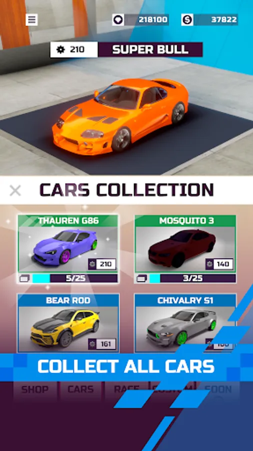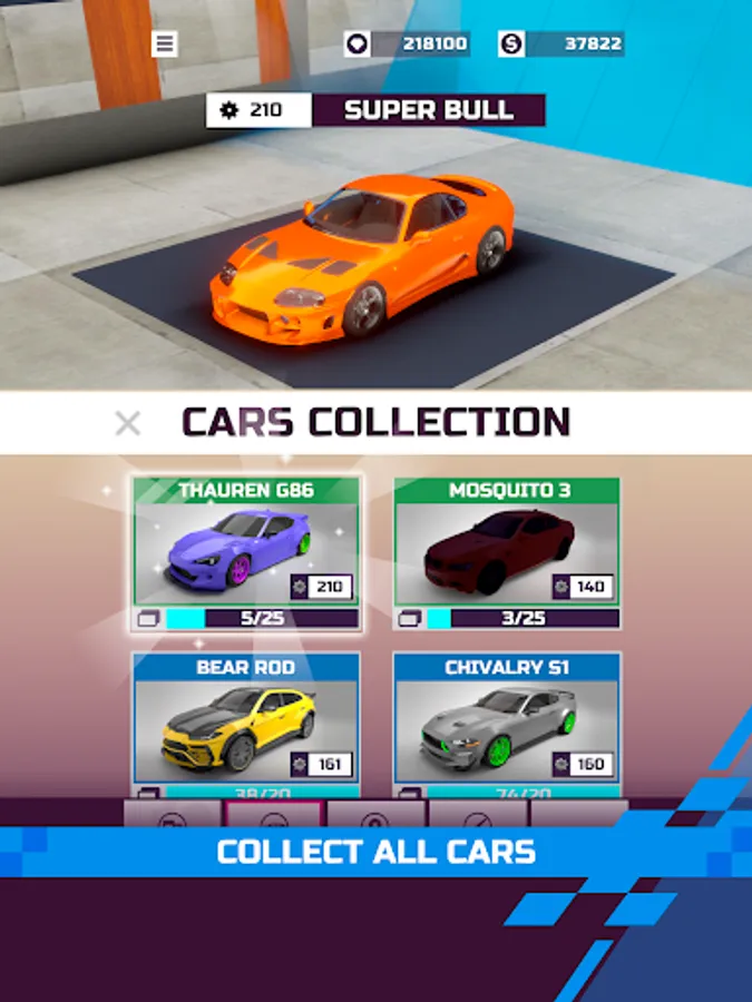 Earn cups by winning races, the higher the prize place, the greater the reward. Get all the achievements and try to collect the entire collection of cars. Each auto has its own character and maximum capabilities. Be careful, it's impossible to break away from the drift!