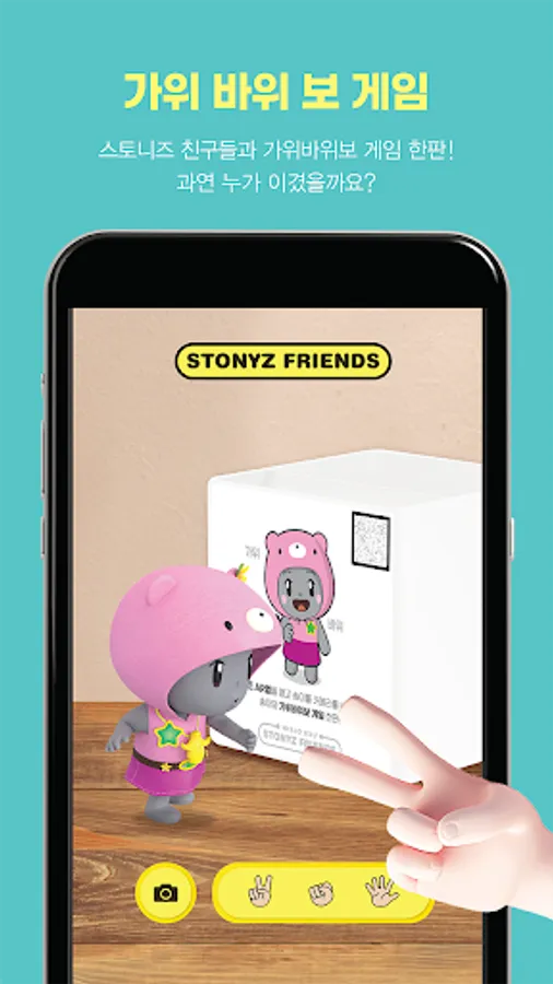 2. You can play rock-paper-scissors games with Stoney friends and take pictures together.