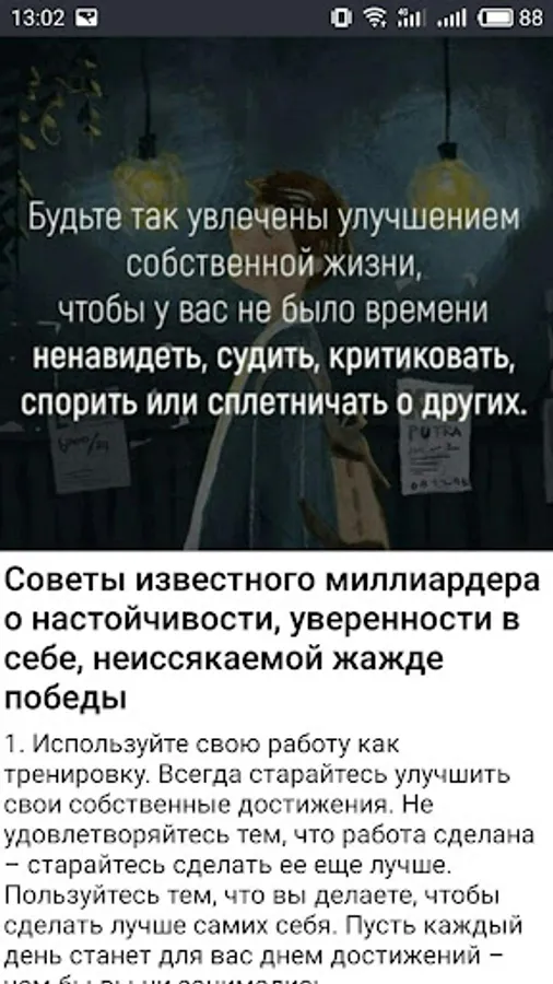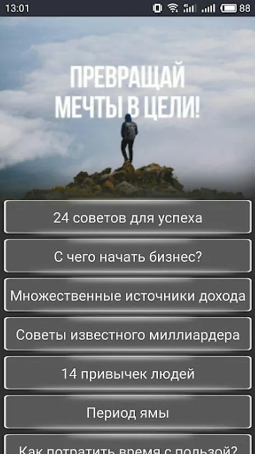 The application "Business Development Motivation Path to Success for FREE" contains the most relevant tips from a series of business magazines. Here you will find business notes, business books, you can learn how to draw up a business plan, you will find information on how to open a business from scratch. The app will set you up for business success. Well, business quotes with motivate you to succeed.