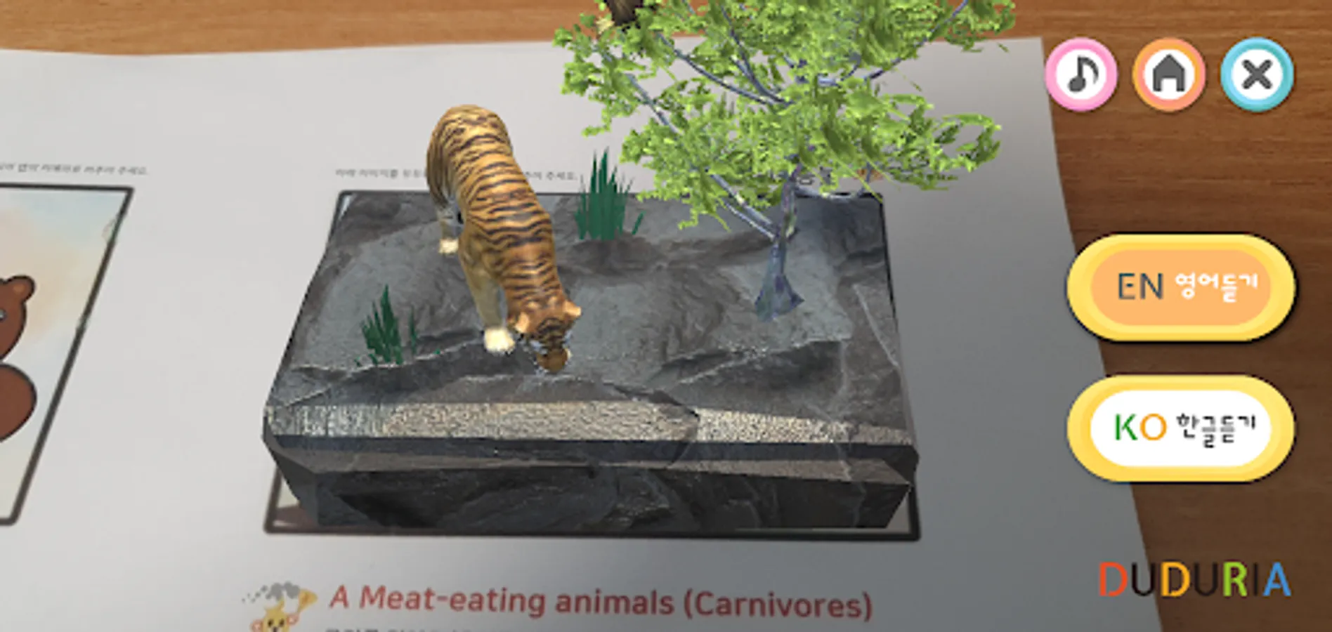 You can appreciate the contents while watching the animated augmented reality character with English listening.
