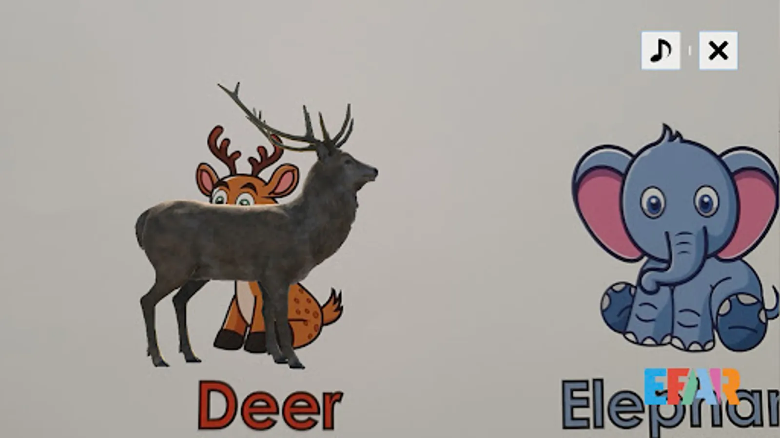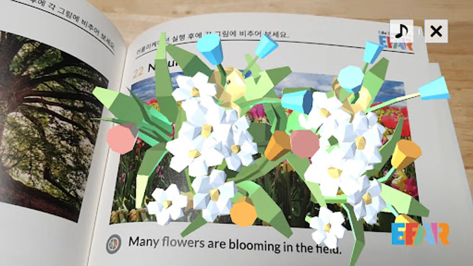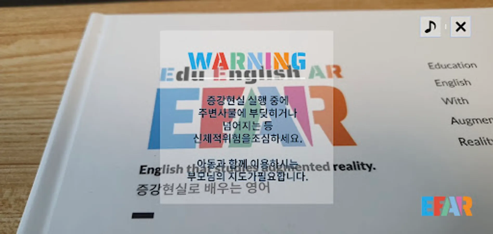# EEAR is an app for children with their parents to study English with augmented reality and enjoy while experiencing augmented reality content. Please read the precautions for use and have a pleasant experience with your family.