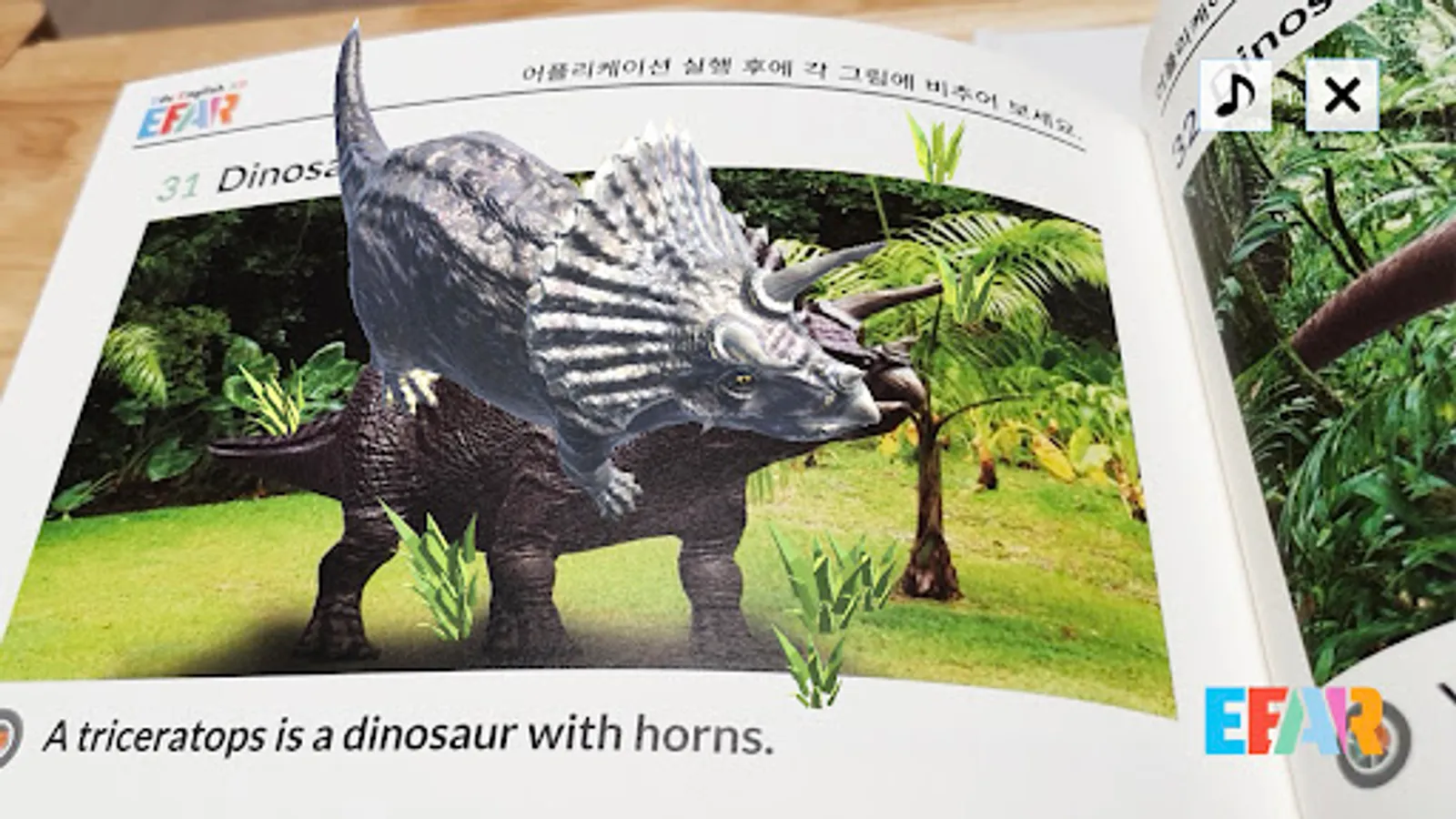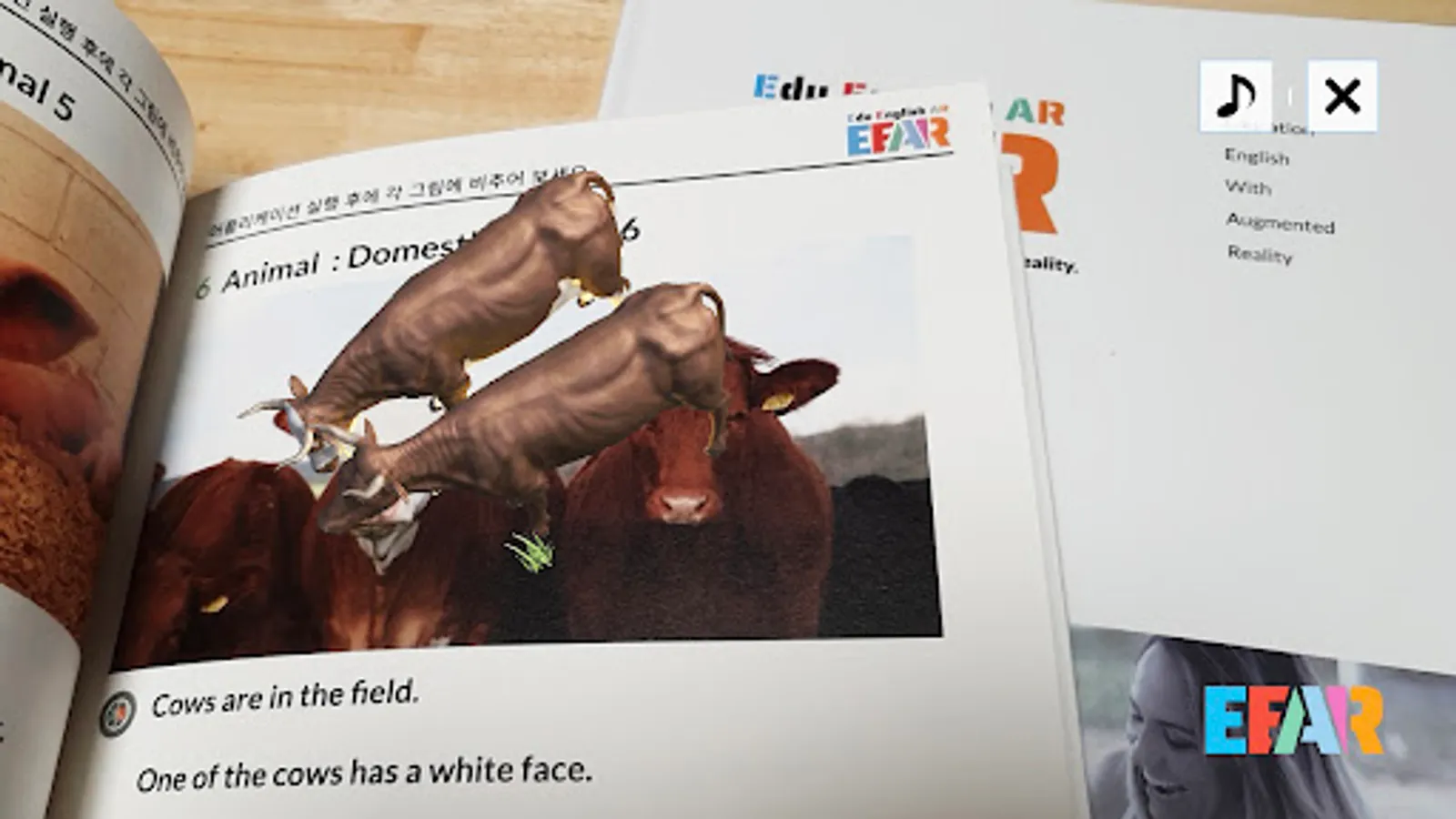 As of 2021, two books have been completed, including topics on daily life and the world, animals, and dinosaurs, and three posters about animals and fruit dinosaurs have been implemented. You can experience augmented reality by running all of these with the EEAR app and illuminating them.
