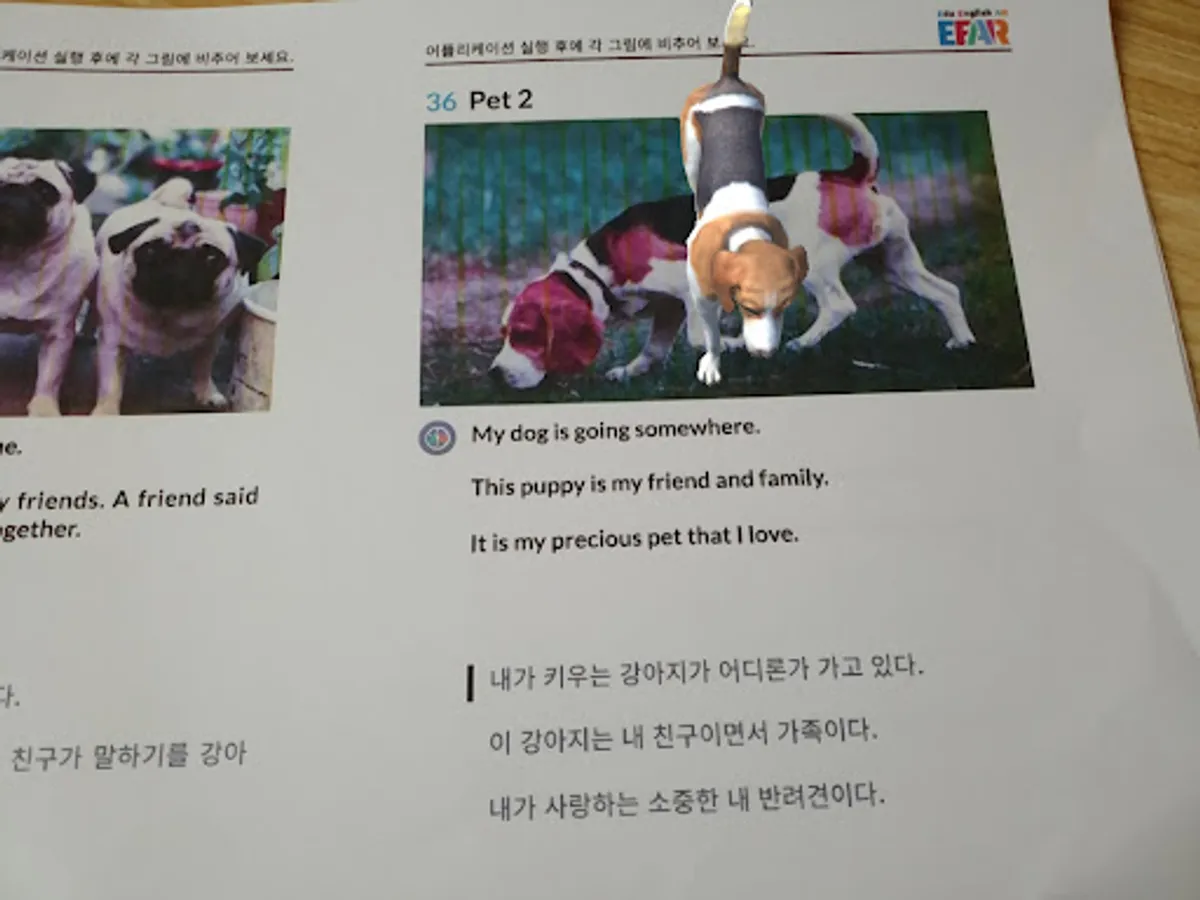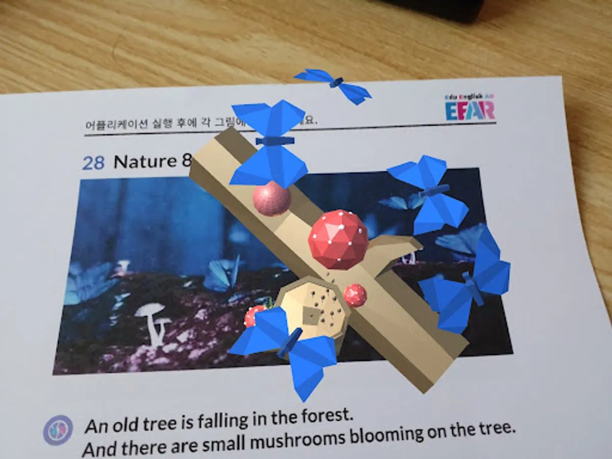 After running the application, if you illuminate the screen on a specific picture, augmented reality content related to the picture appears, and it is possible to listen to English sentences related to the corresponding contents with English pronunciation.