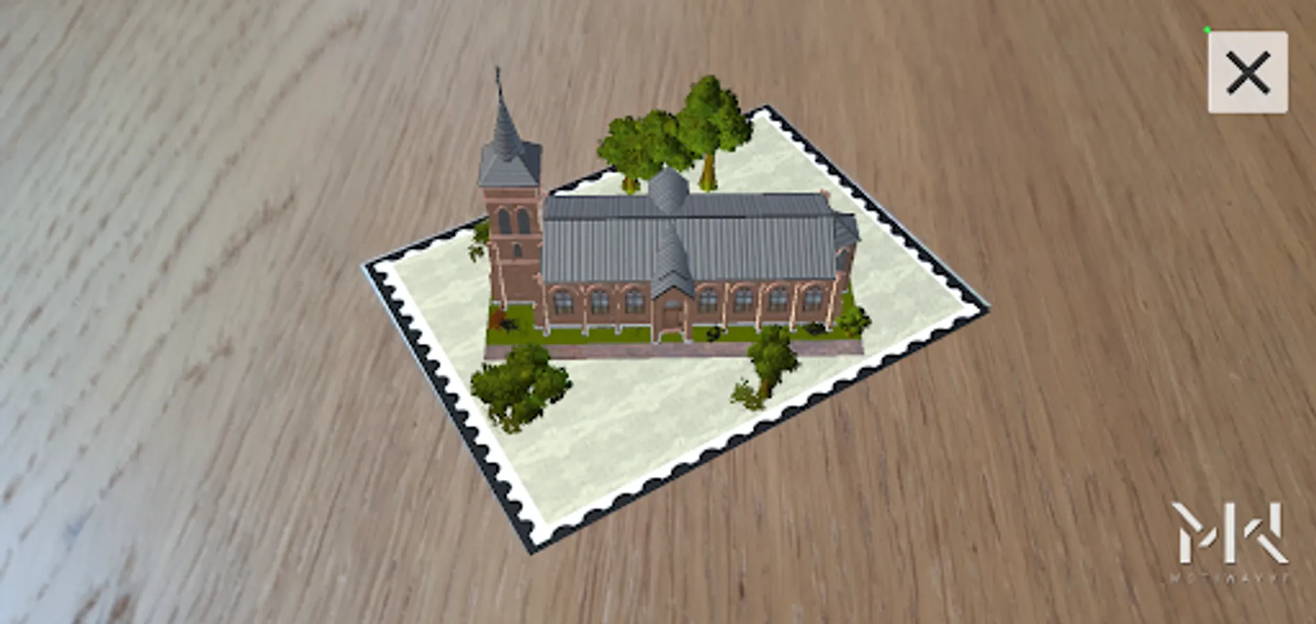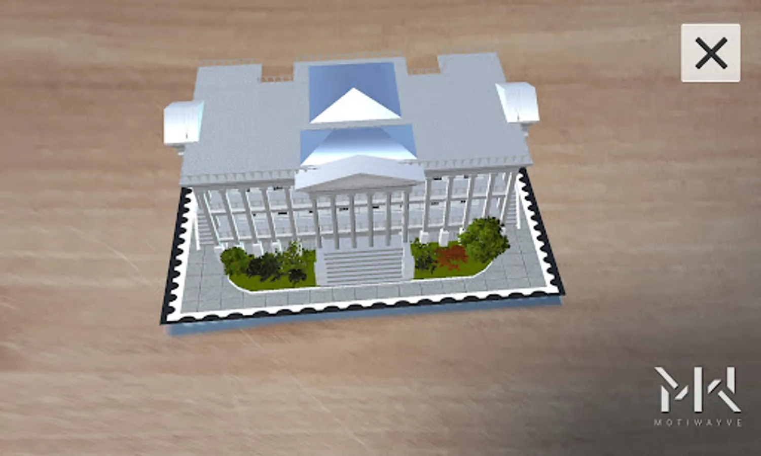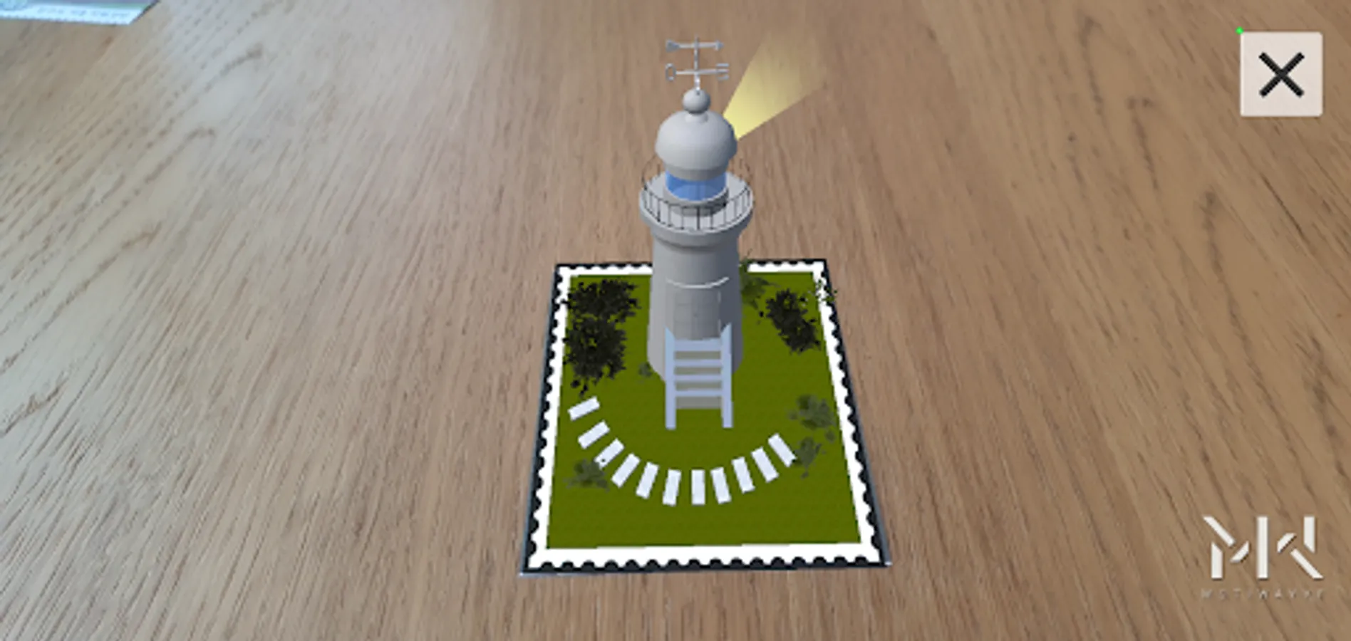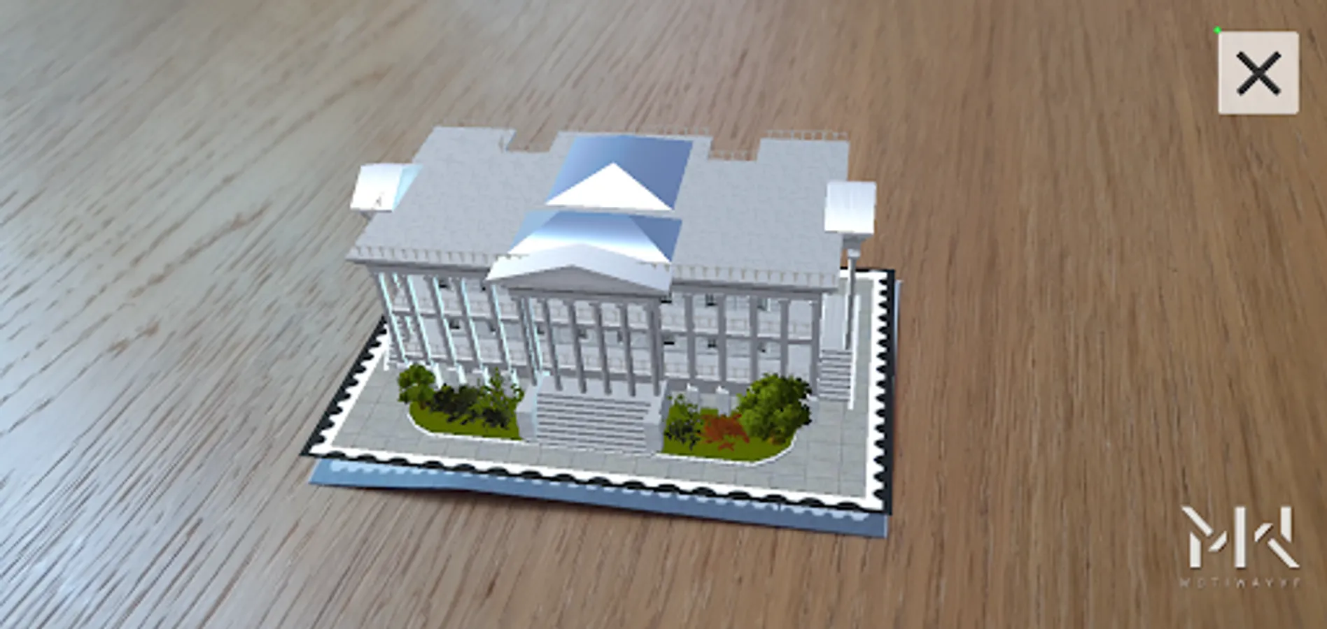If you run the app and shine the stamp, the landmark in the stamp appears as 3D content, and you can hear the information about the landmark by voice.
