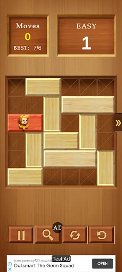 ✔ Wooden Theme: Here the red block or brick will be trapped in between the wooden bar and you have to slide out the red block just like a sliding puzzle.