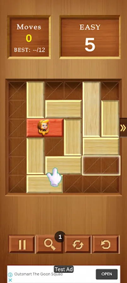 Every puzzle level is a board with the main block stuck between other blocks. Horizontal and vertical puzzle blocks must be moved out of the way of the main block in order for it to unblock me.