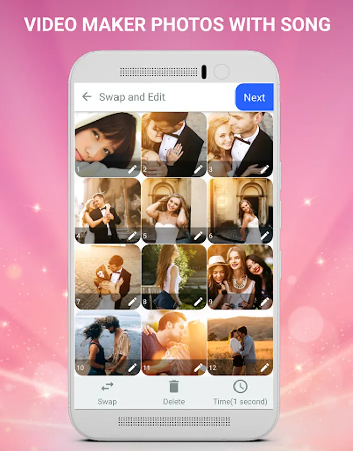 Video Maker Photos With Song is application for creating and editing video from images, music and share amazing music video story with friends!