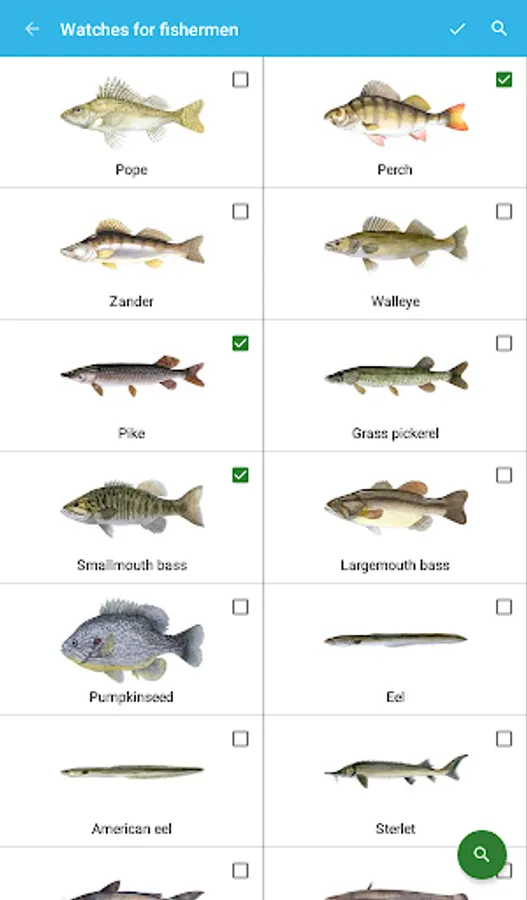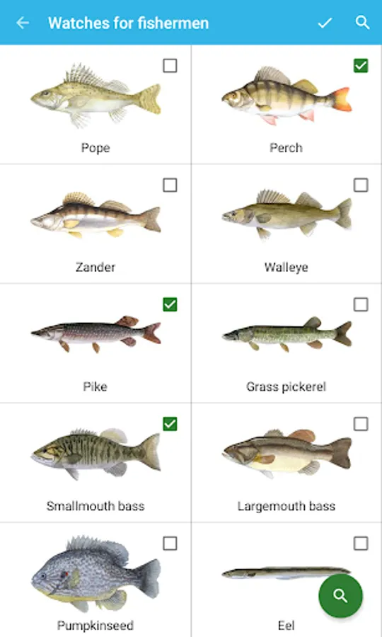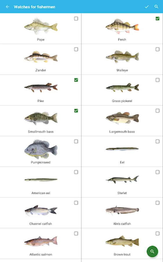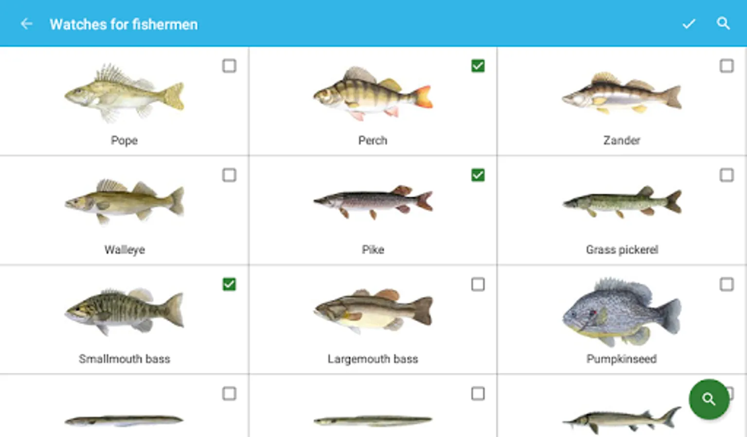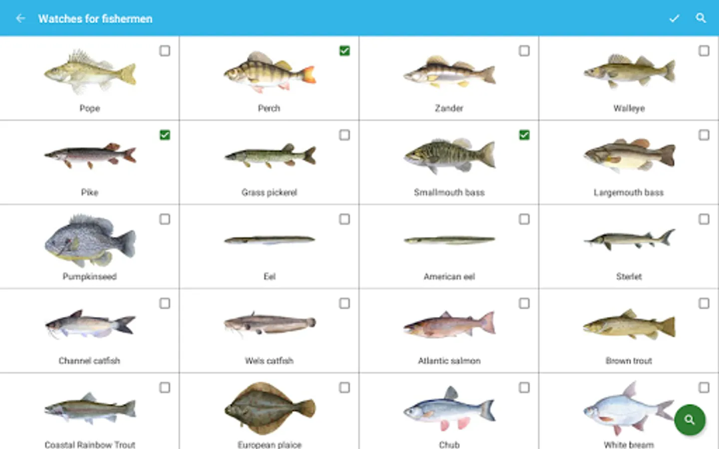 For for more convenient display you can select the desired fish species. In the application settings the fishs are distributed across the families.