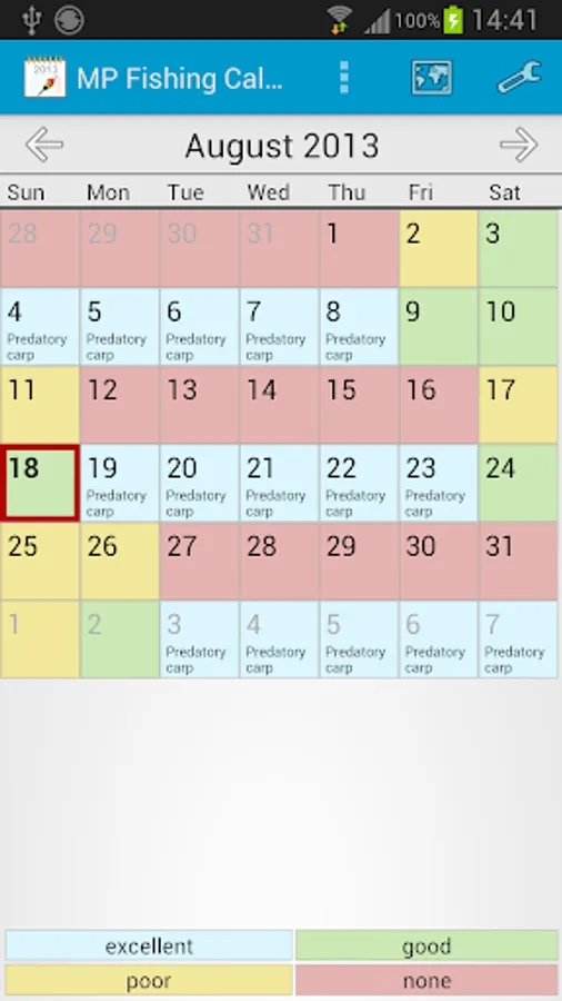 Calendar fisherman to determine when in the near future we plan to check out fishing.