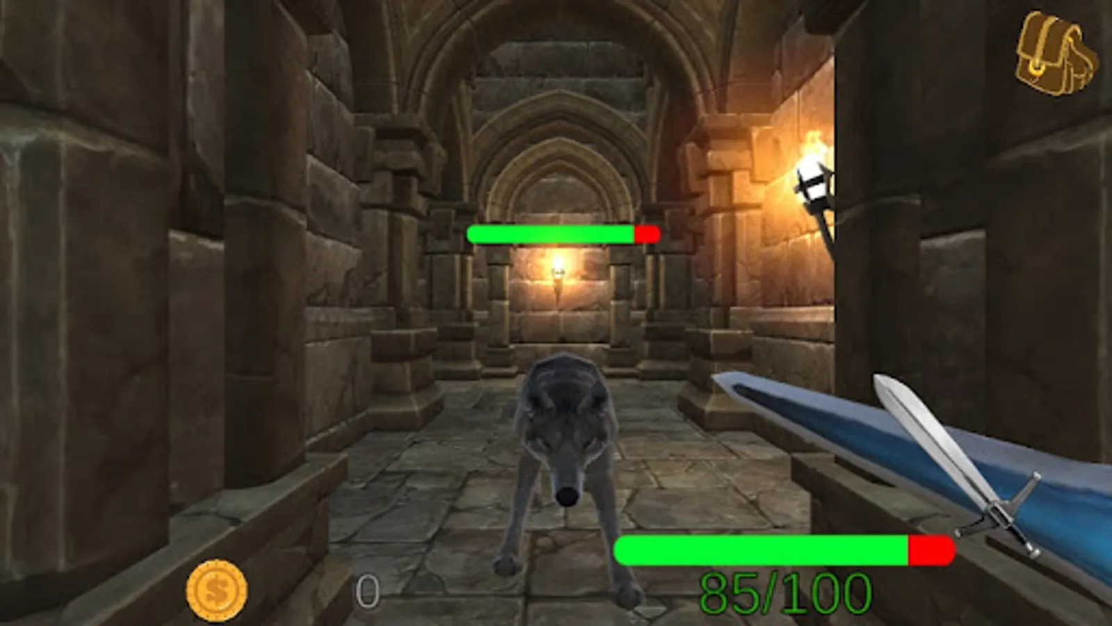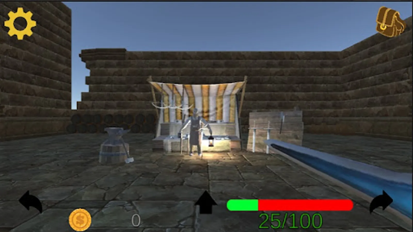 Dungeon castle contains monsters and vendor. Player kills monsters sells equipment buys new equipment. At the end is megamonster which counts damage dependant on the stats.