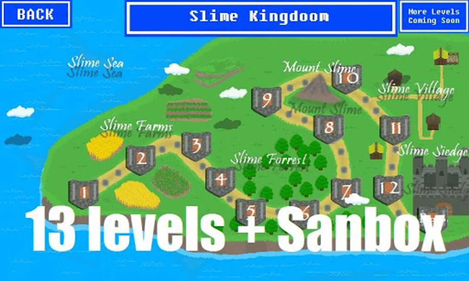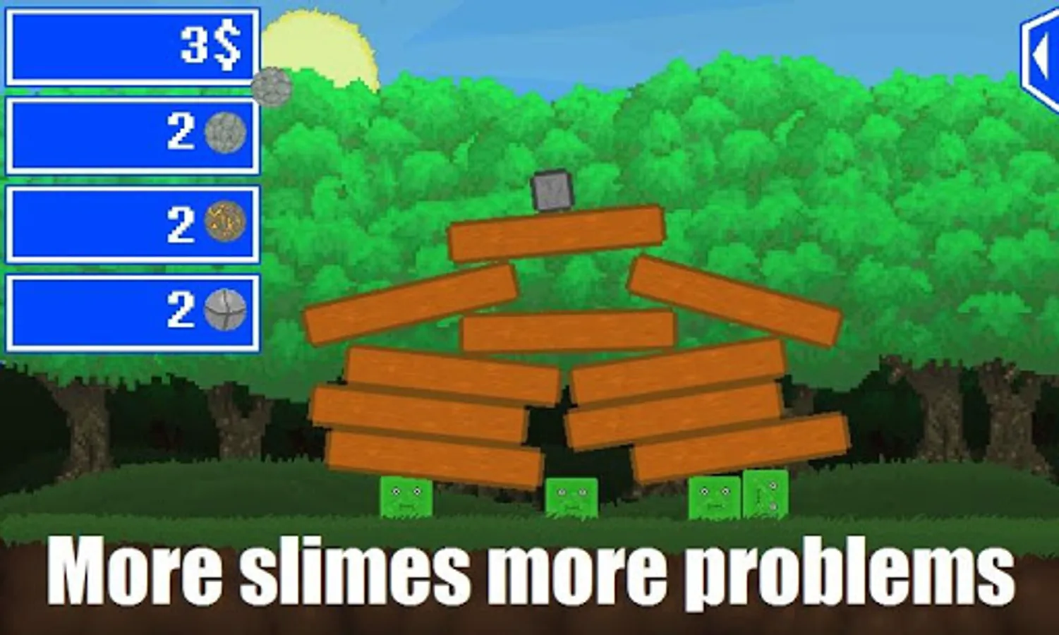 You have to build a stronghold, to defend slimes from balls. There are 3 types of balls (Stone, Fire, Iron) and 3 types of materials (wood, glass, stone). You choose strategy! Diferent materials are resistant to other balls.