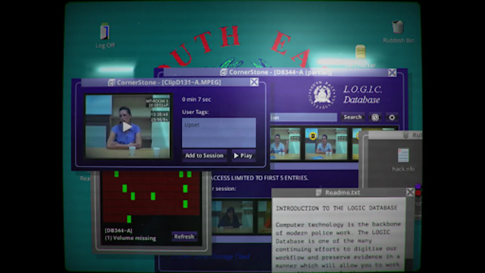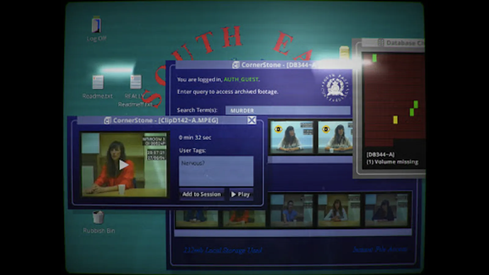 Her Story sits you in front of a mothballed desktop computer and logs you into a police database. Search through hundreds of video clips that cover seven interviews from 1994 in which a British woman is interviewed about her missing husband. Explore the database by typing search terms, watch the clips where she speaks those words and piece together her story.