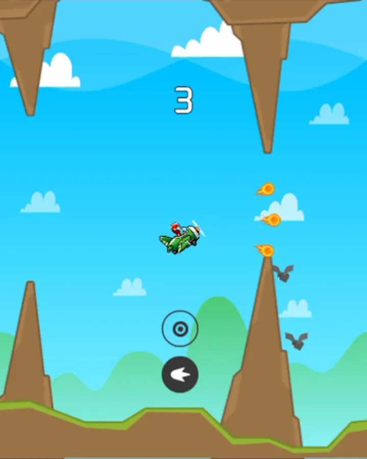 tap the screen to fly the plane and press the fire button to shoot the bird. Avoid the obstacles and get the high score.