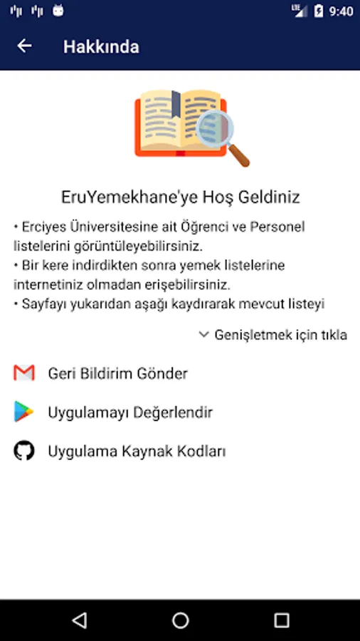 EruYemekhane application allows you to view the cafeteria menus of Erciyes University.