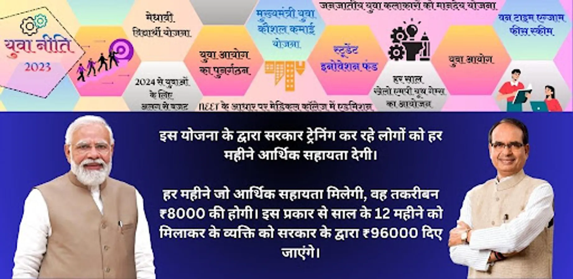Madhy Pradesh Mukhyamantri Seekho Kamao Yojana – मध्यप्रदेश द्वारा प्रदेश के युवाओं के लिए नई योजना की घोषणा की है। 23 मार्च 2023 को भोपाल में हुए ‘एमपी यूथ पंचायत 2023’ कार्यक्रम में मुख्यमंत्री शिवराज सिंह द्वारा Mukhyamantri Seekho Kamao Yojana की घोषणा की है। इस योजना के तहत जो युवाओं पढ़-लिखने के बाद भी कोई रोजगार नहीं मिल पाता तो मध्यप्रदेश ऐसे युवाओं को हर महीने 8000 हजार रूपये देगी और उन्हें विभिन्न क्षेत्रों में ट्रेंनिंग देकर रोजगार भी दिलाएगी। मुख्यमंत्री युवा कौशल कमाई योजना रजिस्ट्रेशन 1 जून 2023 से शुरु किये जाएंगे। यह योजना में 1 जुलाई 2023 से पैसे देना शुरु किए जाएंगे। ट्रेनिंग के समय प्रतिमाह 8000 हजार रूपये मिलेंगे। बेरोजगार युवाओं के लिए यह योजना का शुभारंभ किया गया है।