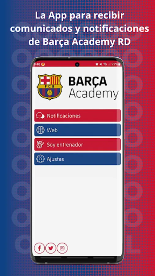 BARÇA Academy RD is the App to receive communications and notifications from Barça Academy RD
