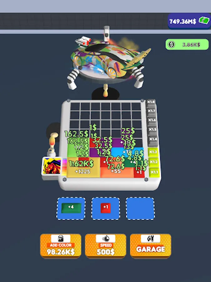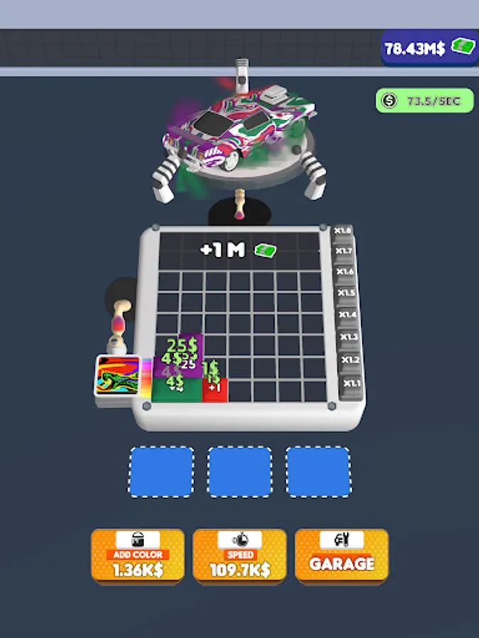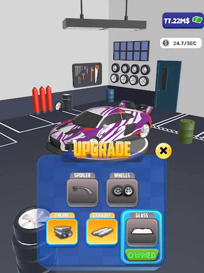 Live your tuning dreams! Buy used cars to tune them up to the highest point! Paint your cars incredible colors and liveries, upgrade your cars tires, engine, exhaust and create the coolest looking cars! Build the ultimate car painting machine! Merge your painter parts for crazy colors and gain crazy amounts of money!
