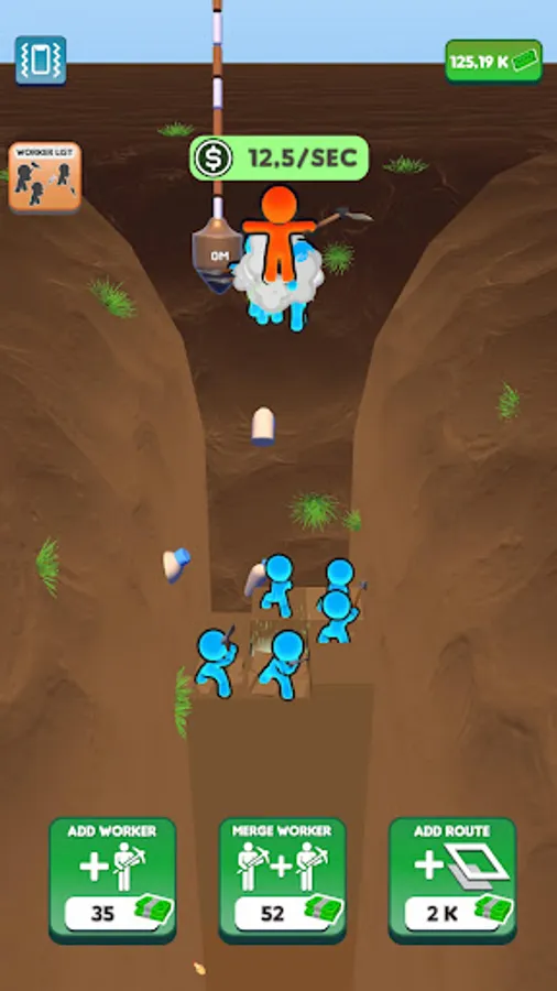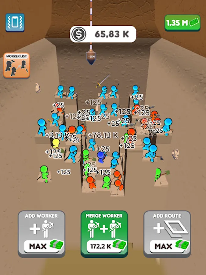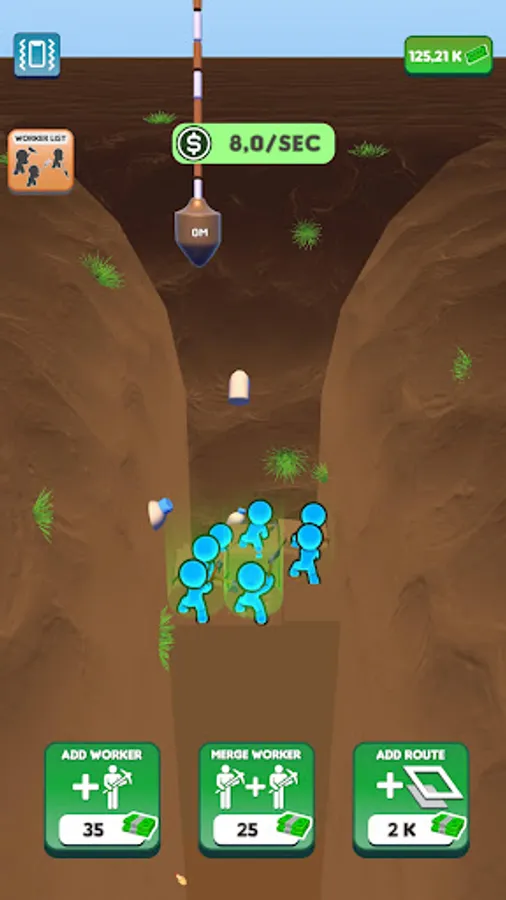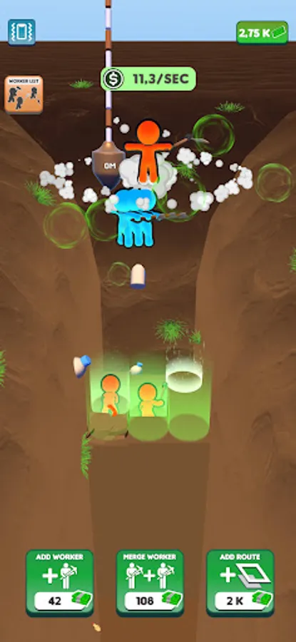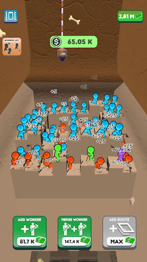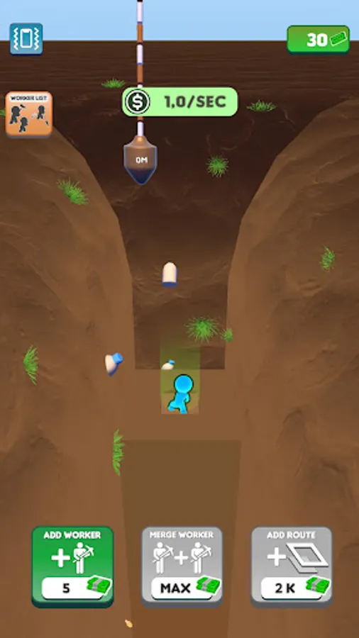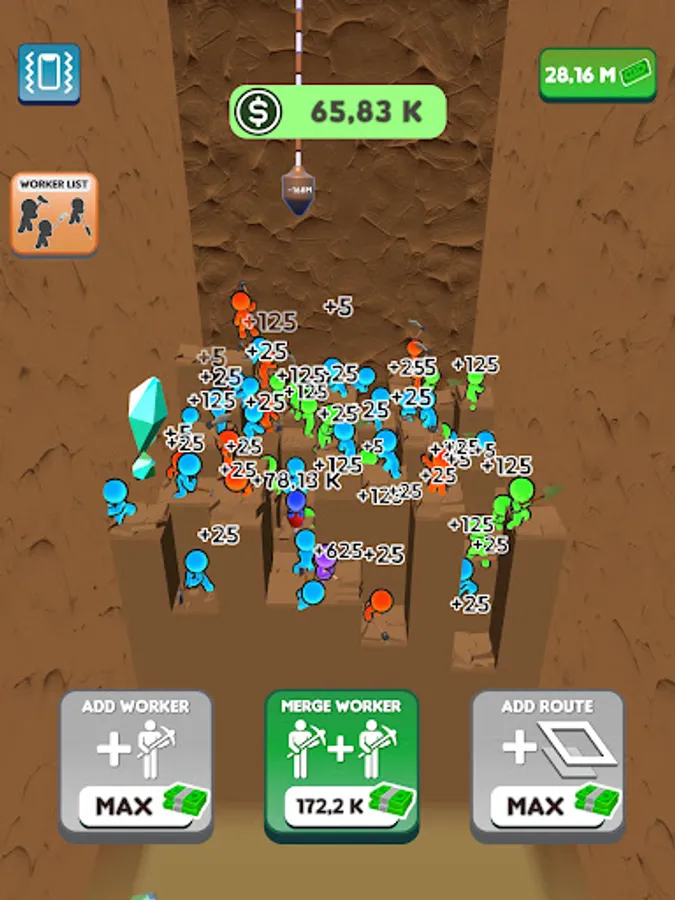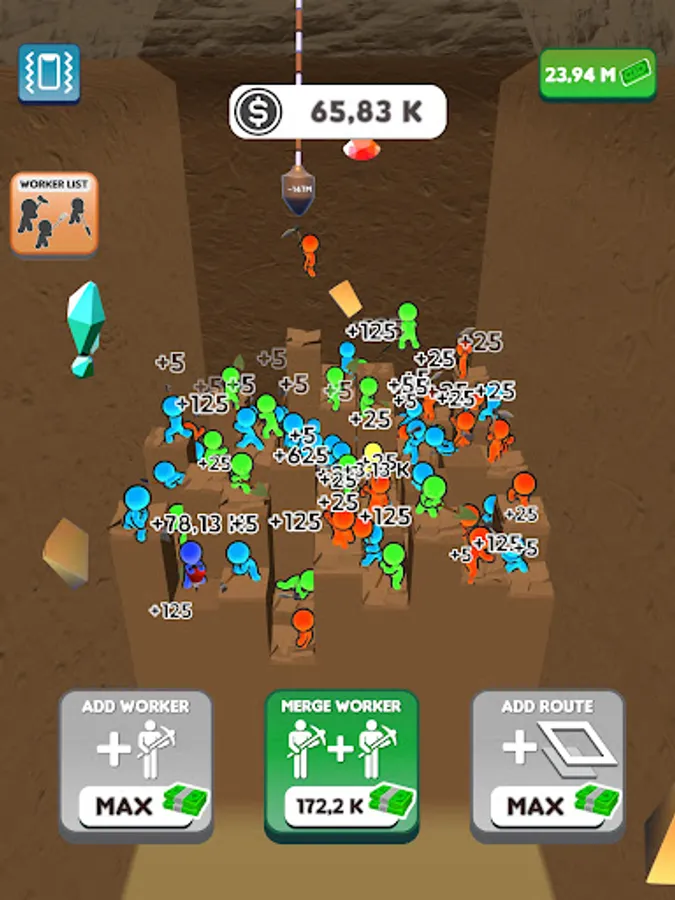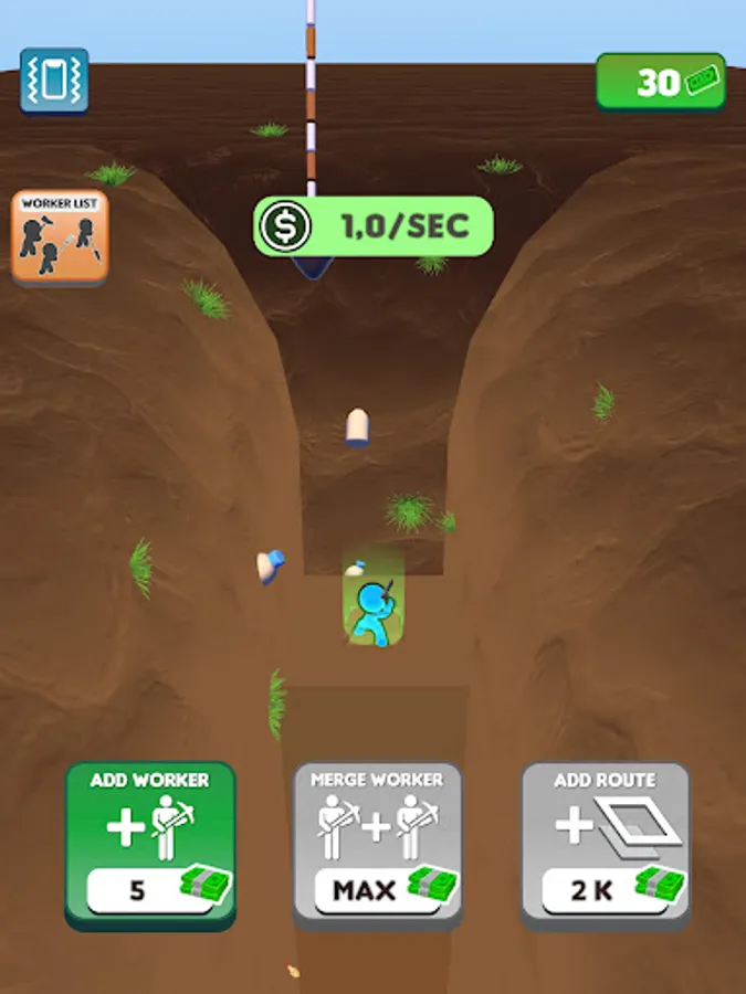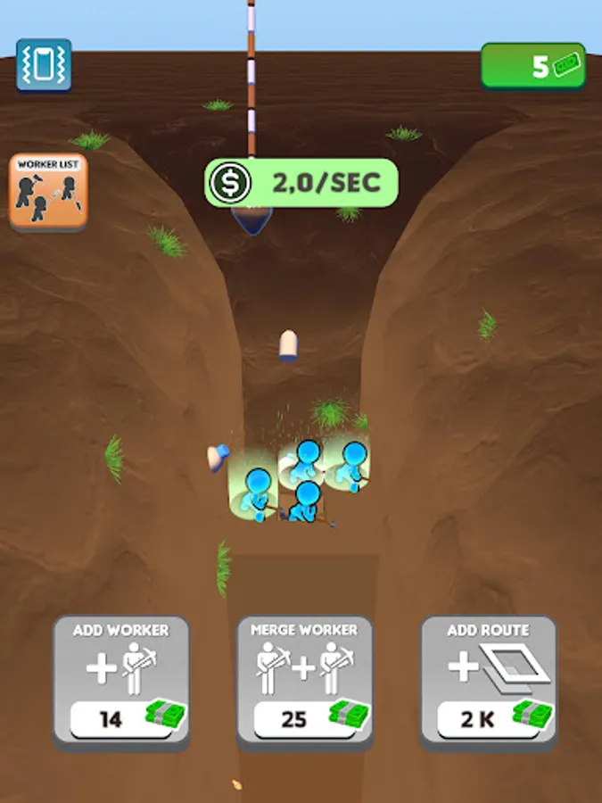 We have set a goal and we will reach it! Join the journey to the center of the world! Dig down, gain money, buy diggers, merge them, enlarge your digging area and gain more money! Don’t want to dig all the way down there by yourself? Let the workers do the hard work for you while you manage them! Discover unknown depths, never before seen by the eyes of man. Who knows what might be down there?