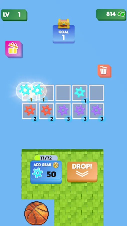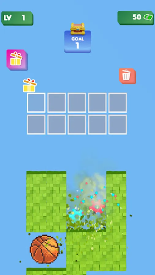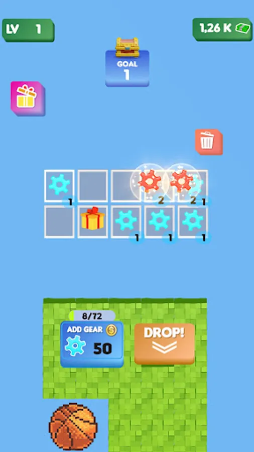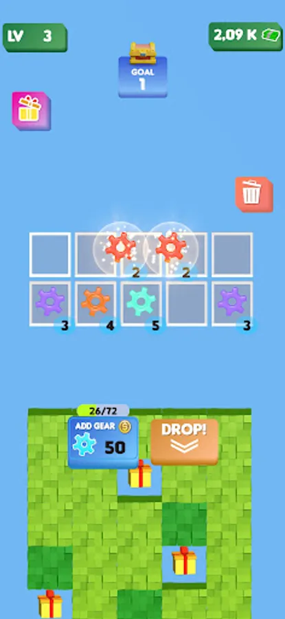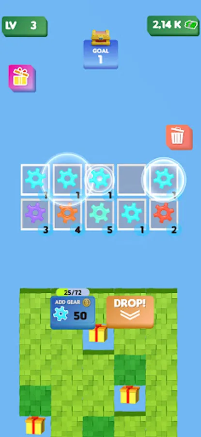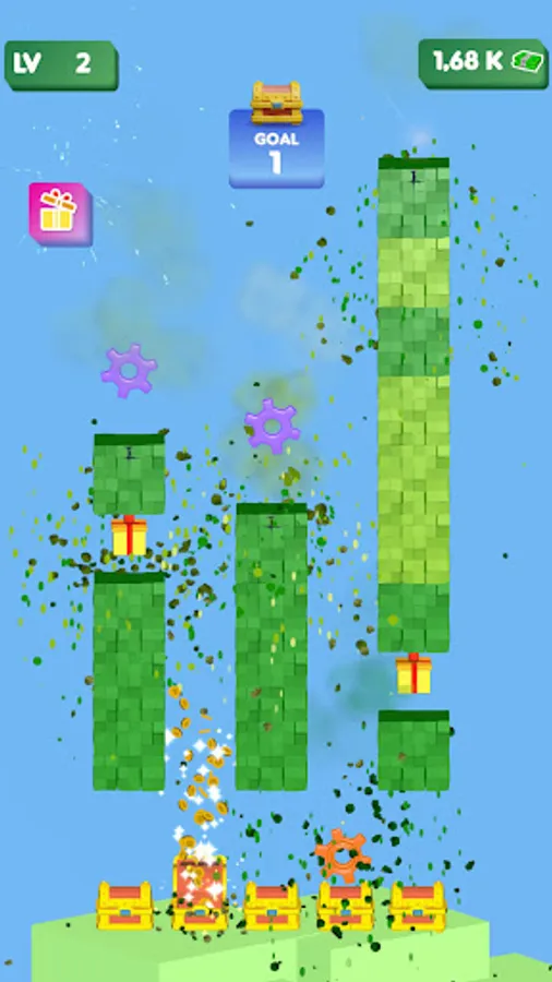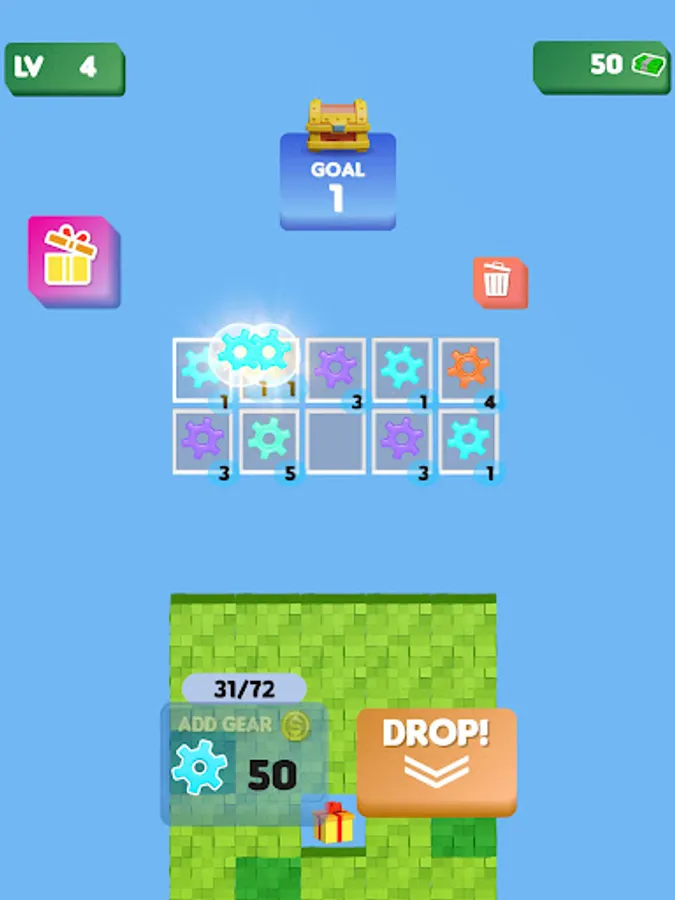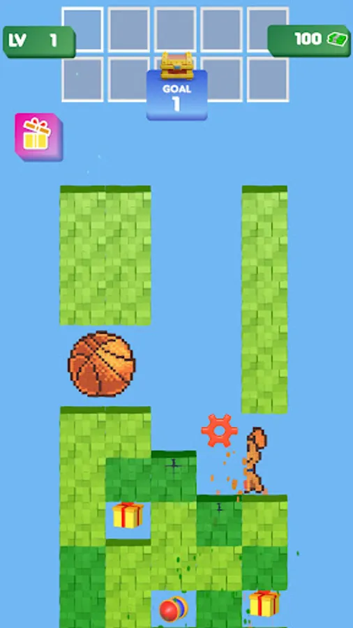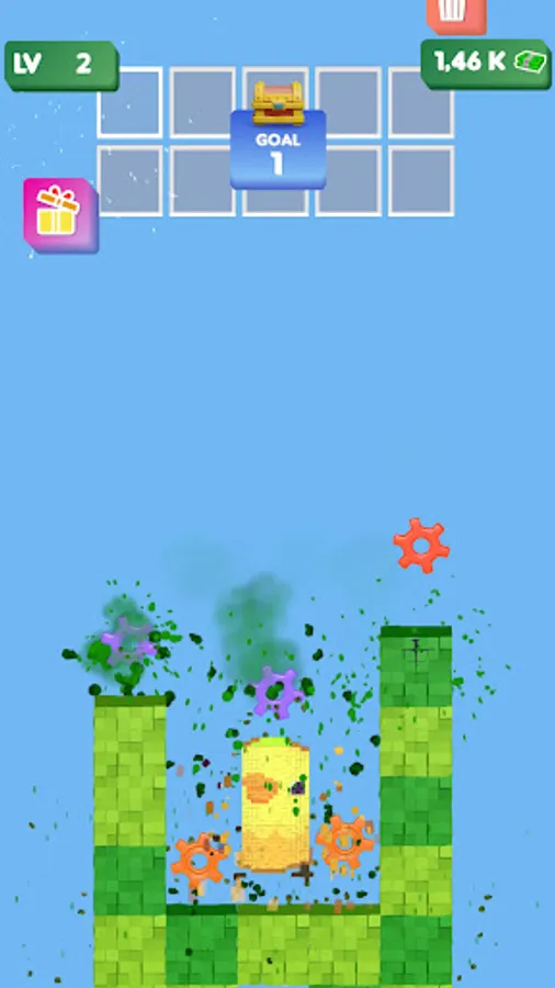 Gain money by destroying blocks, spend your money to buy more cogwheels, merge them for better and stronger ones, acquire gifts, trigger rockets and try to reach the end!
