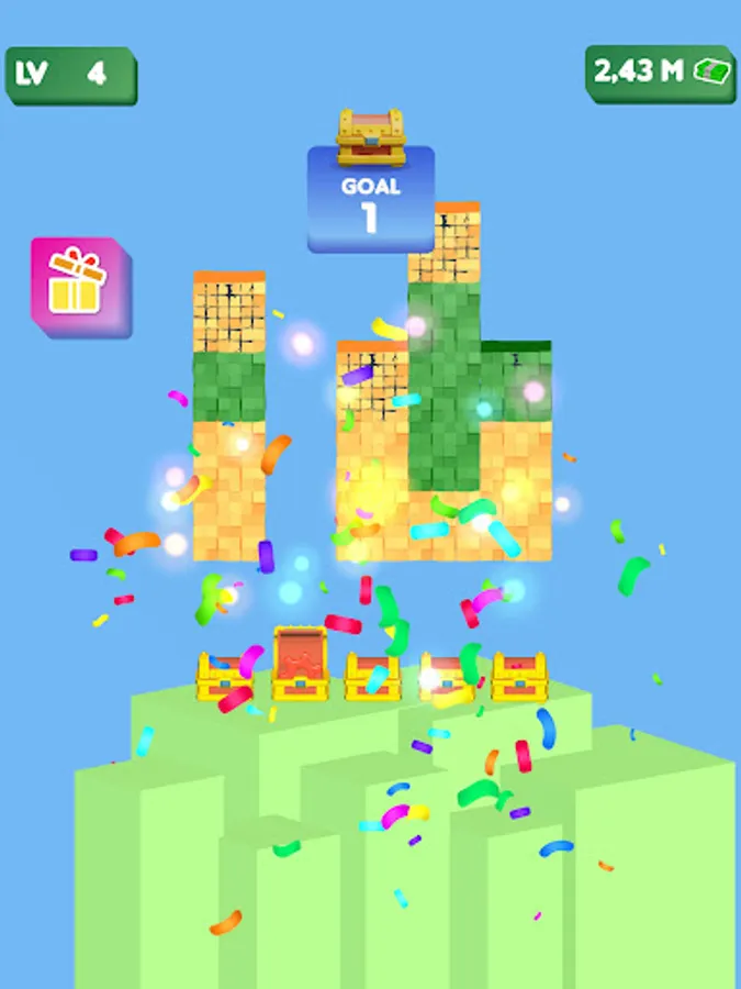Merge your cogwheels, and demolish thousands of blocks! Grab gift boxes as you fall down to get even more cogwheels! Reach to the end, to get… Even more cogwheels! Destroy beautiful pixel art mercilessly! Nothing is able to stand in your way anymore!