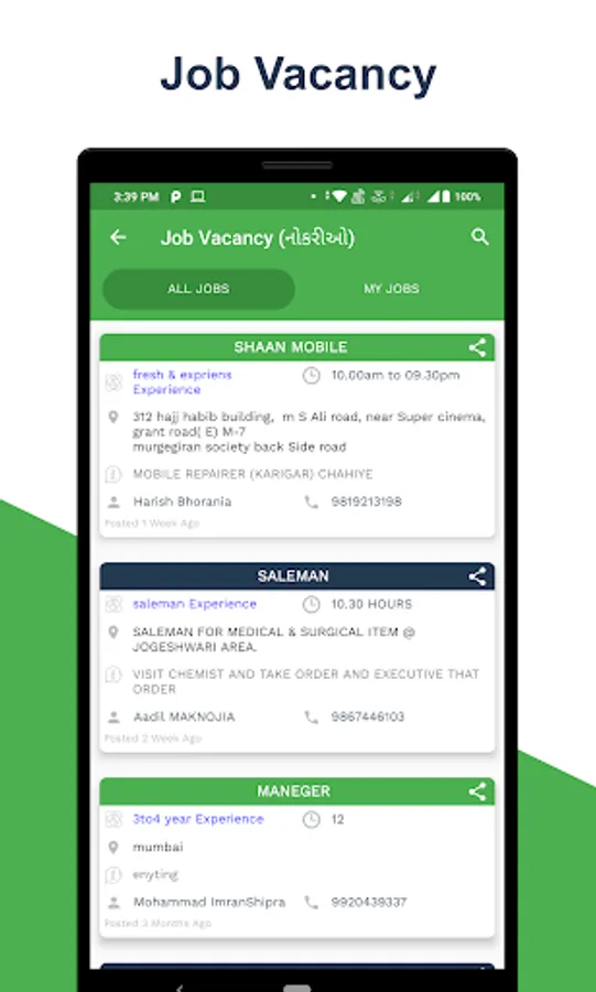 ●Through the Job Portal you can view job opportunity and send request for job.