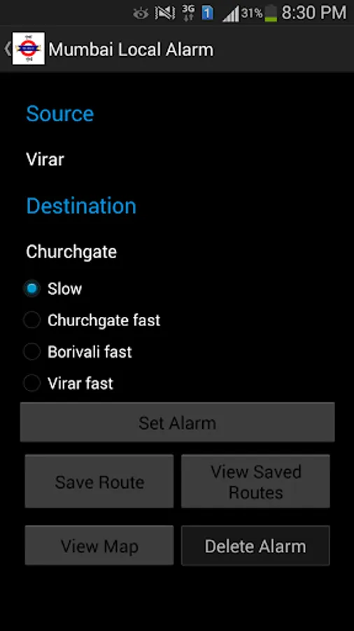 Like sleeping, reading, listening to music while in the train? Worried you will not wake up in time to alight at your destination? Mumbai Local Alarm is here to wake you up on time! Simply select your route, source, destination and press the 'Set Alarm' button. That's about it!