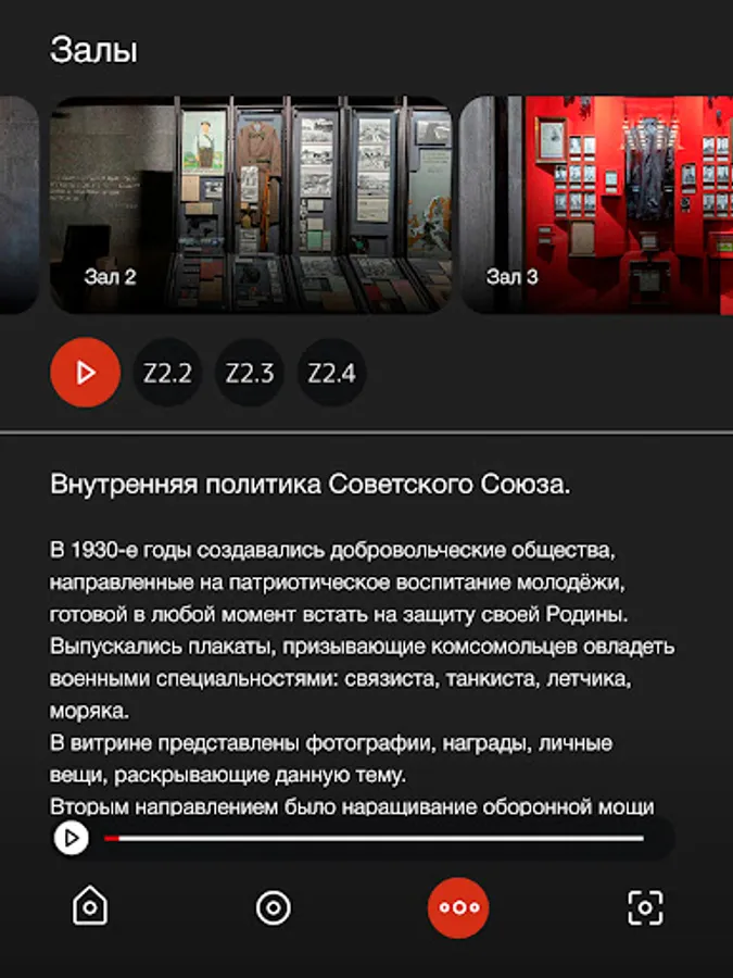 The application presents an interactive map of the museum, audio clips, video clips of the chronicle of the war years, a virtual tour with augmented reality tells about the most significant exhibits. For teachers and schoolchildren, the application includes military-historical quests that turn a traditional excursion into an exciting adventure and focus the attention of their participants on historical facts about the Battle of Stalingrad.