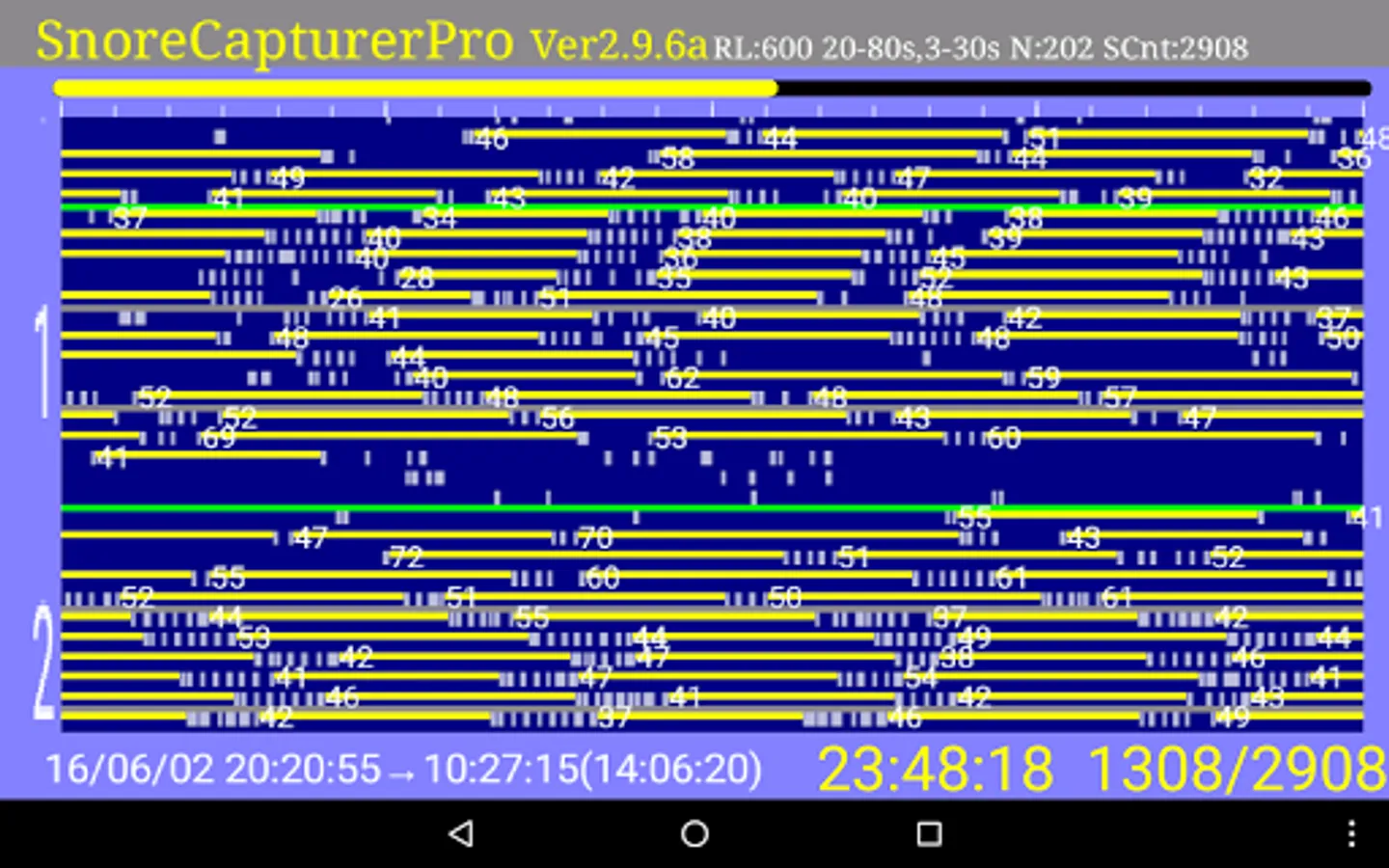 ・You can visualize your snoring and see them.See the screen shot.Each dot corresponds to one snore etc.