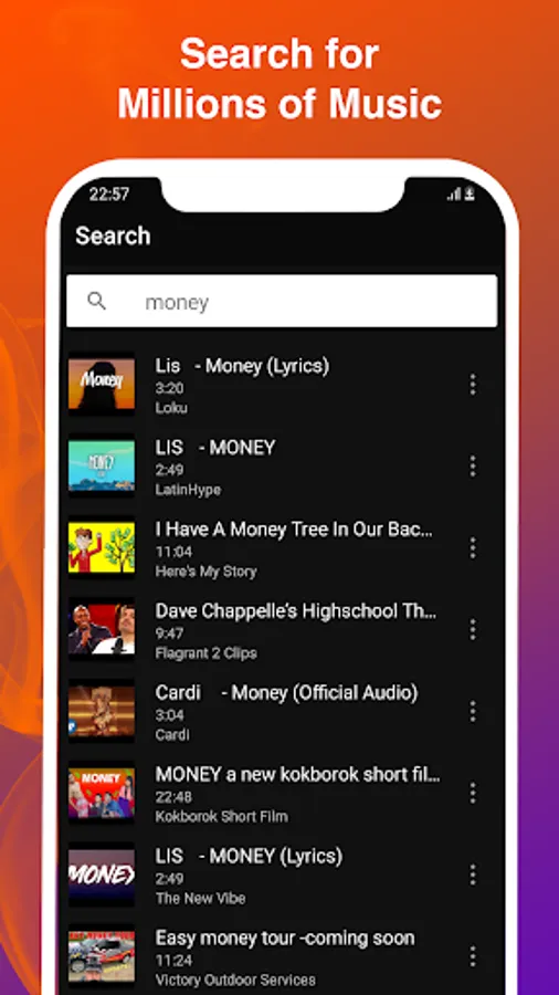 Musie is using the third-party API source from YouTube. All the free music is provided by Youtube service.
