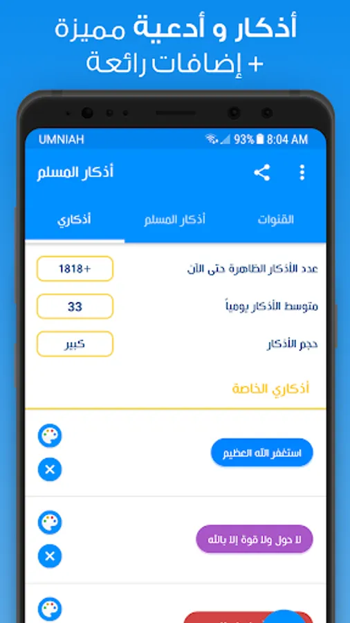 - My Azkar, you can customize your own Azkar Dua, to appear on screen like others!