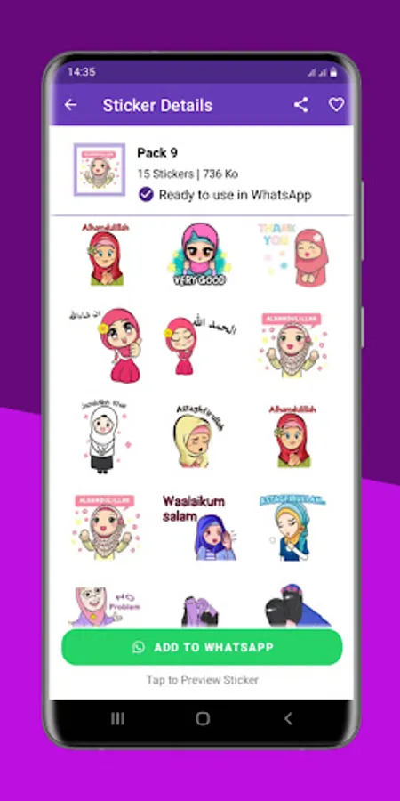 Overall, the "Muslim Hijab - WAStickers" application is an inclusive and entertaining app that allows users to express their cultural identity, creativity, and individuality through a vast collection of hijab-themed stickers. It aims to bring joy and a sense of belonging to those who wear hijabs or are interested in Islamic culture, while also promoting positive representation and diversity.