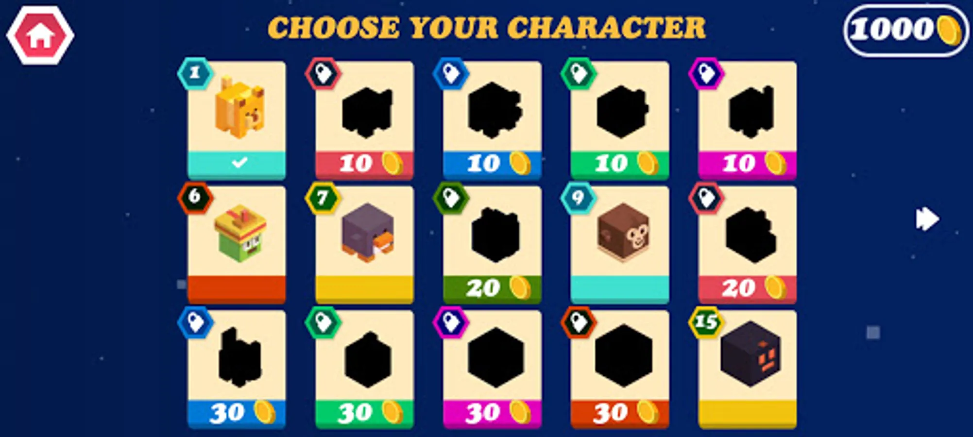There are many characters (dog, koala, hippopotamus, bee, rabbit, goose, monkey, etc.) and several backgrounds in shop screen.