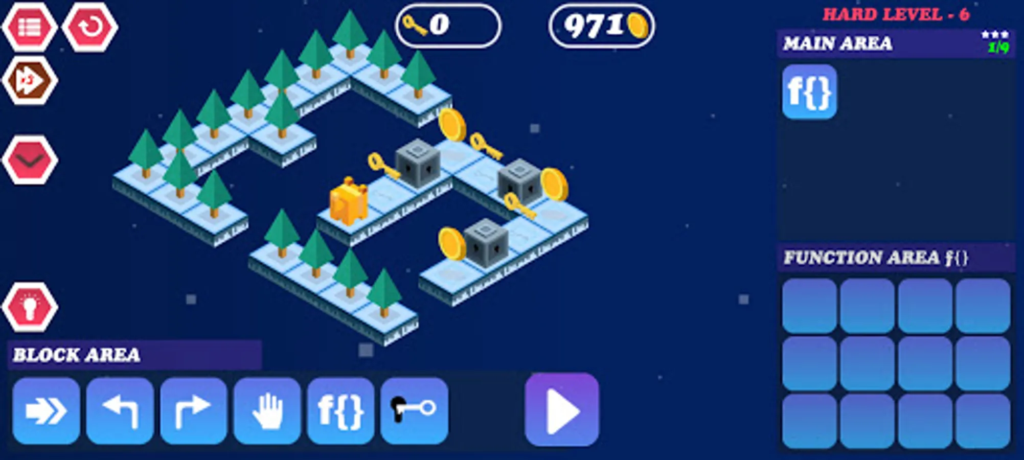 The players gain the basic concepts of coding, like command sequencing, functions and loops, by guiding the character by collecting golds and solving levels.