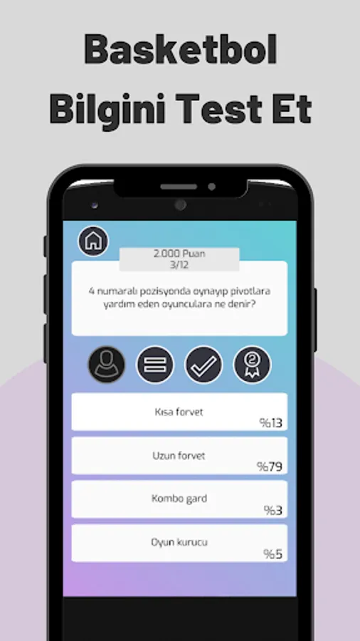 • Measure your basketball knowledge with game rounds of 12 questions each.