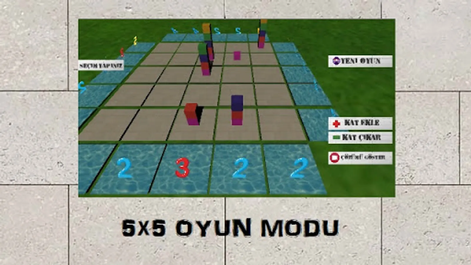 Sudoku is fun! Each of the bars in the game represents an apartment. The game platform is filled in the direction of the question cards so that different colored apartments are located in each row and column once. The numbers given outside the diagram give the number of apartments that can be seen not behind a higher-storey apartment building when viewed from that direction.