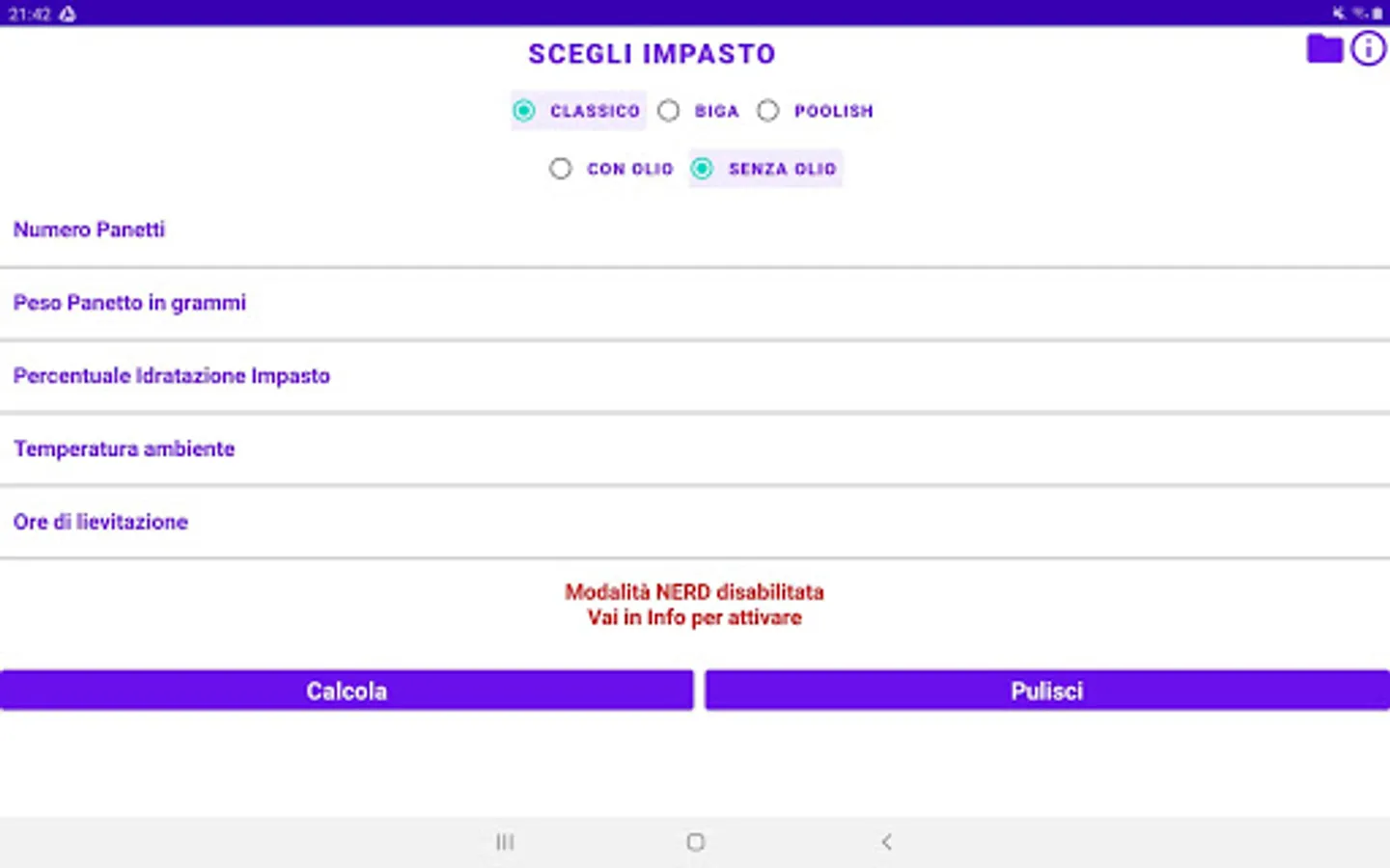 DIY Pizza was born from the idea of grouping in one app the calculation of the doses for a Neapolitan pizza. It is possible to choose between three different types of dough: Classic (direct) or Biga or Poolish (indirect). Additional features of the app are the ability to save your doses and the procedure for the type of dough chosen. It is also possible to listen to the doses and the saved procedure. For those who want a TOP pizza, the possibility to activate the "NERD" mode for further details on your doses.