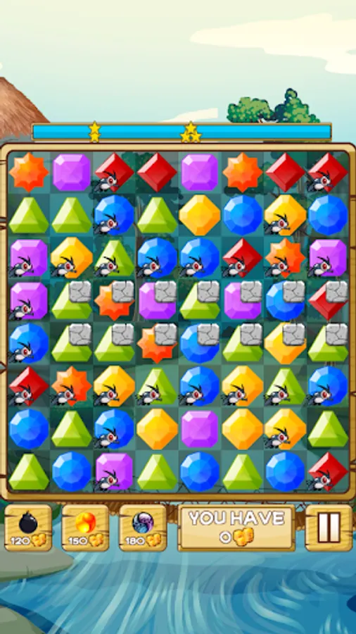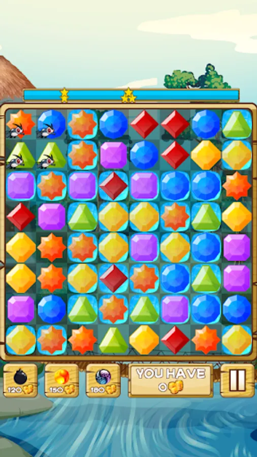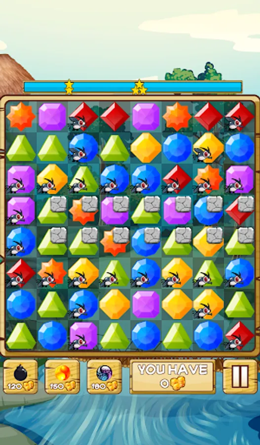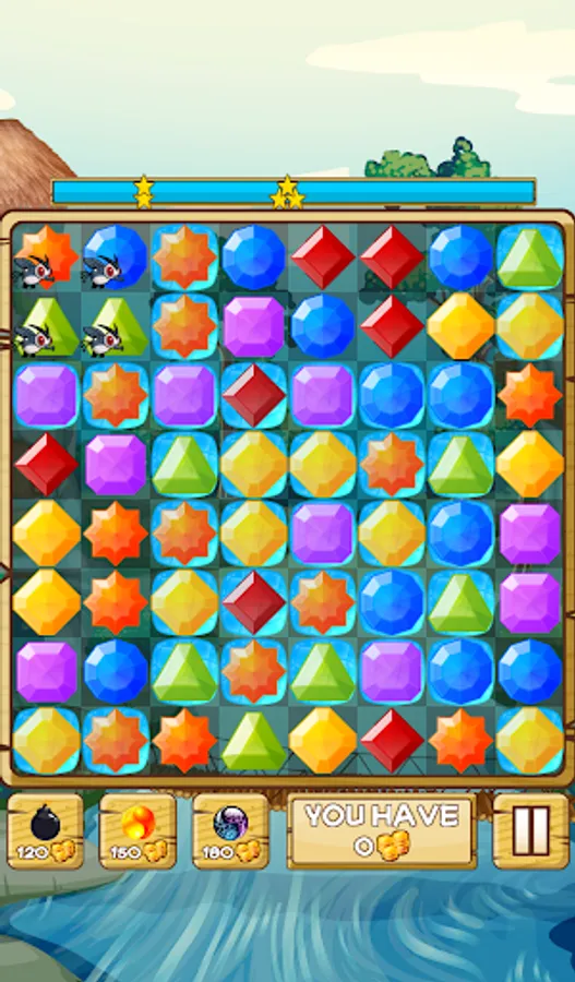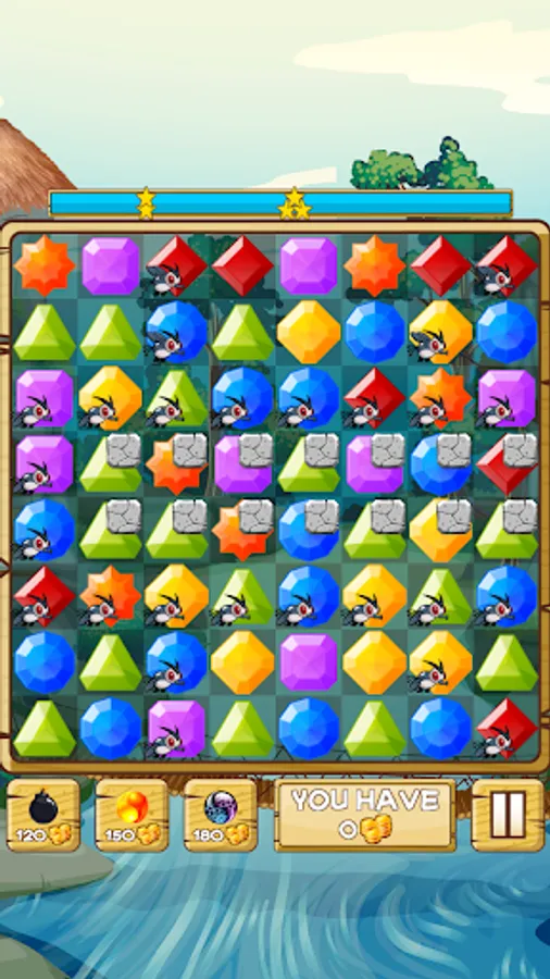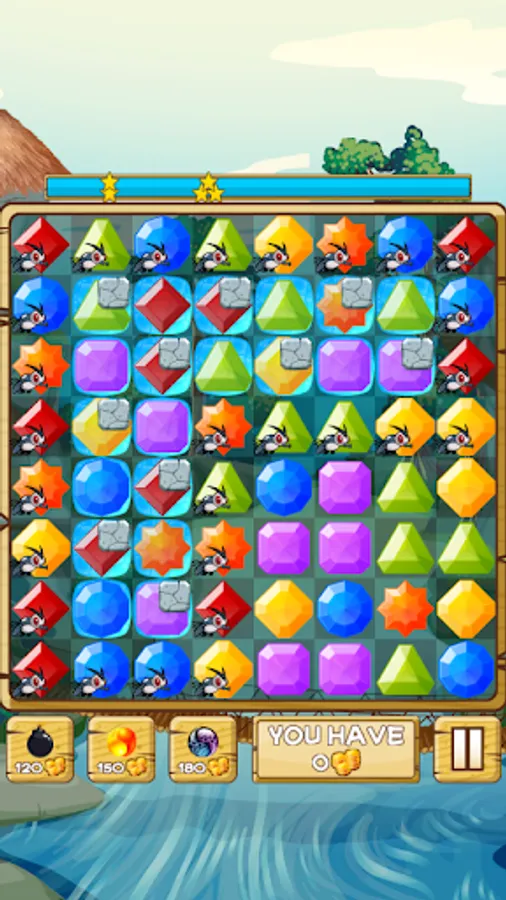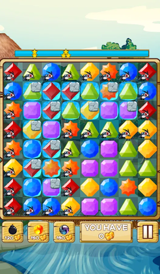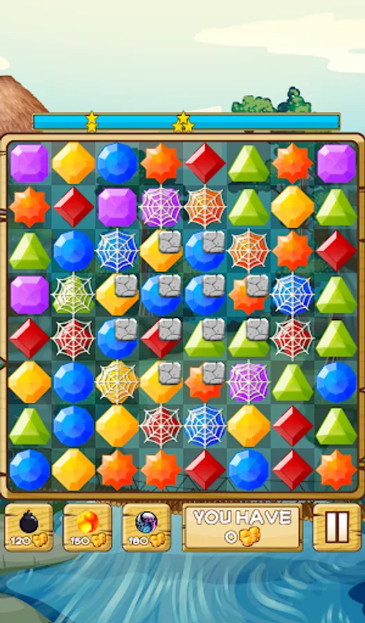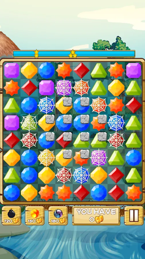 Match 3 or more jewels in a line, melt frozen cells, destroy stone slabs, cut webs, and kill pesky flies. Create bombs and elemental gems to activate powerful devastating effects. Enjoy challenging and well balanced gameplay.