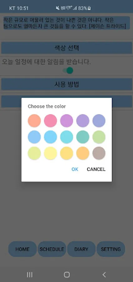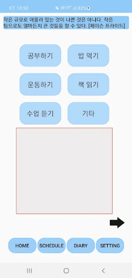 3. You can use the timer in the schedule management part. (If you click the “Complete” button, it will be recorded, and only if you delete the schedule from the list, the completed schedule will appear in the time table. If you do not delete it from the list, it will appear in the time table as an incomplete schedule.)