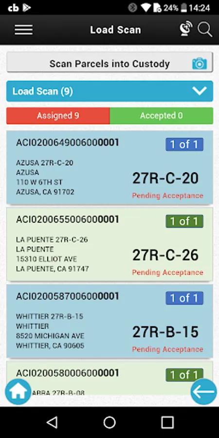 The parcel delivery app is designed to track custody of parcels from third party shipping partners that require strict controls up to delivery. This technology allows the distributor to deliver a wider variety of product, and diversify his business.