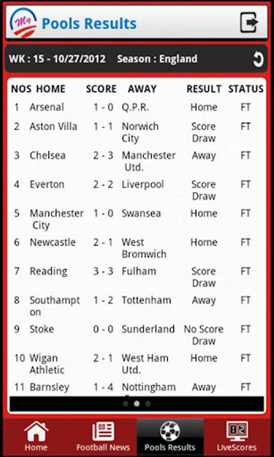- Football results