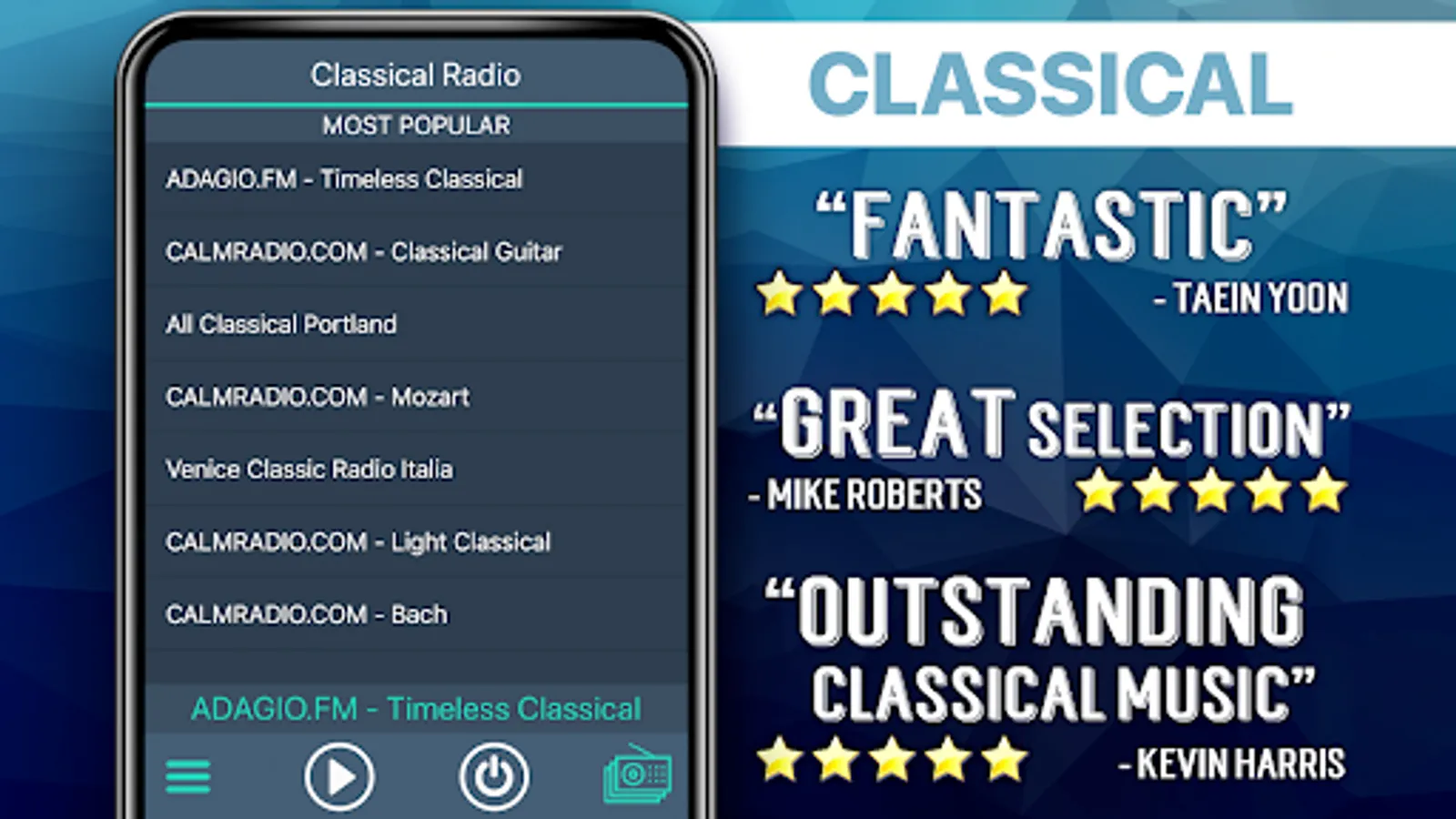A: Unfortunately, Classical Radio Favorites doesn't support all devices and operating systems. This is the main reason we have decided to bring this app to you totally FREE! Try it out to see if we are coming in loud and clear, "Nothing ventured nothing gained." We are adding support for new devices all the time.