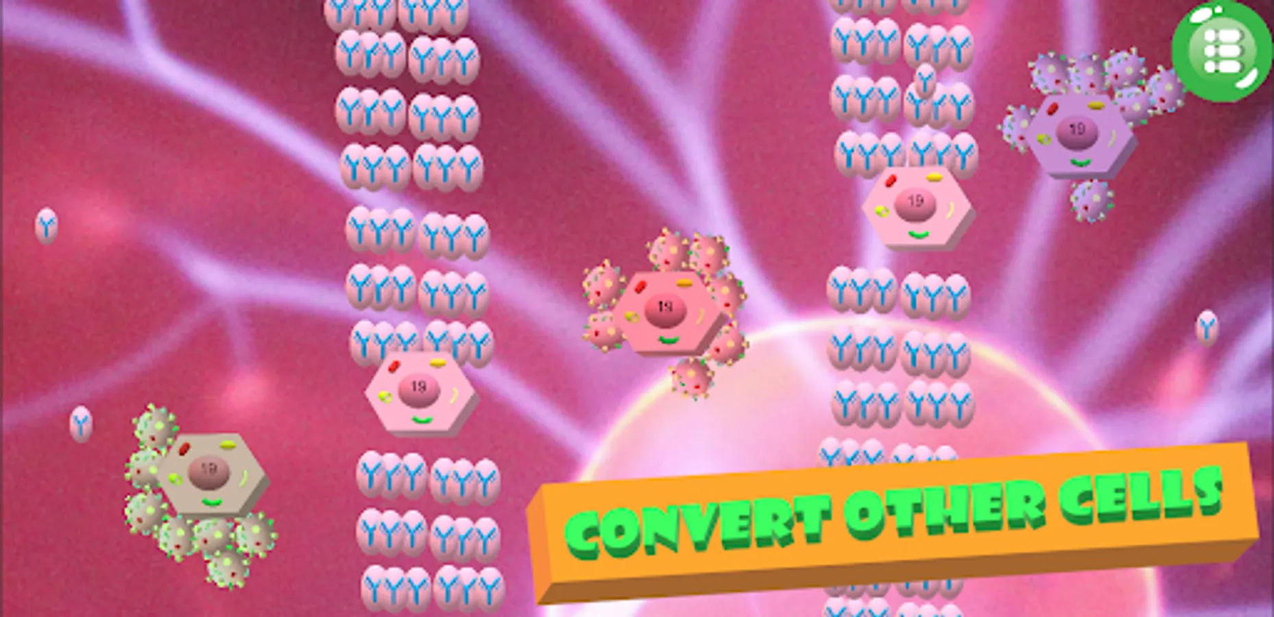 Reproduce your virus from your cells to increase your species for the basic instinct to survive and procreate. Explore the map and grow colonies of cells and viruses. Control the outbreak of infectious viruses reproduced in harmful cells creating an spreading plague. Convert harmful cells into your own virus replicating cells and reduce the disease. Defend you bio cells from other viruses invasions, clash your viruses with the others viruses to stop their incursion. Lead and attack and clash with other enemies cells, be the best and convert any single cell in the screen space. Create a plague of viruses of your life form to liberate all the other cells to regain the biology of the scenario and win the battle and this war. Avoid the antibodies blocking the way to the other cells. Win the cell war. Progress through the levels and unlock the superbug and play pandemic scenarios with a mix of superbugs, viruses and mutated cells of different types and antibody blockers. Once the superbug mode is unlocked you can replay scenarios in superbug mode for extra scenario quests and fun! Feel the good and amazing times ever playing this free game! Enjoy this cell wars game.