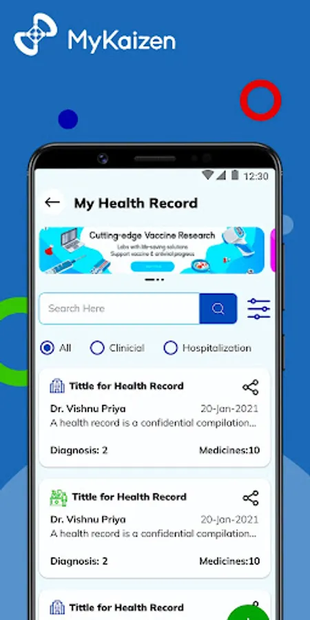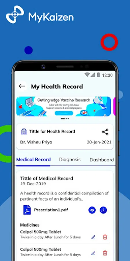 MyKaizen is an app that makes healthcare simple and accessible for you and your family, where you can directly share your medical health records with Doctors, Chemists, Online Pharmacies, Diagnostic Centres and other users etc.