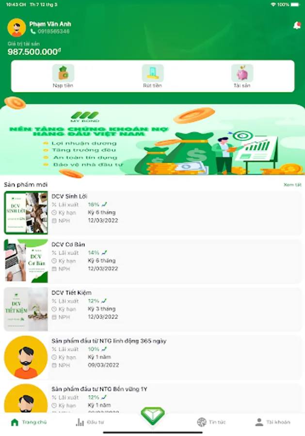 MyBond is a platform for trading and managing corporate financial products through a mobile APP application with safe and transparent Fintech 4.0 technology. With many features of KYC electronic contract management, eKYC electronic identification, principal and interest estimation for investors, etc., MyBond always ensures legally, minimizes financial risks. Besides, MyBond also provides personal finance training for investors participating in the corporate finance market, promoting the wave of corporate investment through intermediaries. MyBond's financial products such as securities, OTC stocks, and bonds are extremely diversified, in many fields such as real estate, furniture, transportation, fuel, agricultural products, metals, energy, technology, etc. … with flexible investment terms and attractive interest rates up to 20%/year. MyBond has media partners such as Vietnamese television station, digital television, mainstream newspapers; financial partners such as banks, financial enterprises, manufacturing enterprises; training partners from universities and national financial institutes with a master's degree in international economics and finance; other partners from business associations, industry associations across the country. MyBond is an extremely secure, safe, transparent and profitable solution for investors in the volatile financial market with many potential risks.