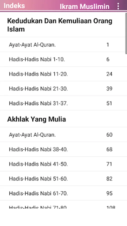 Alhamdulillah, the fourth chapter of Muntakhab Ahadis (Ikram Muslimin) is completed specially for all Muslim readers. This application gathers verses of Al-Quran and hadith from our Prophet Muhammad SAW about the ways to fulfill the rights of fellows Muslim brothers that we can apply in our daily routines. Other than that, it also states the benefits and rewards that we can gain by applying all the glorify fellow Muslim brothers that had been taught.