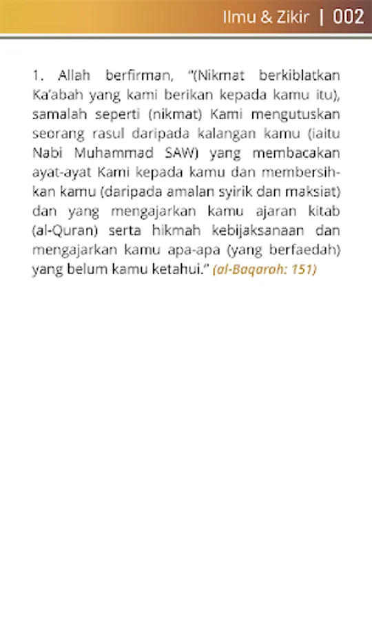 Alhamdulillah, the third chapter of Muntakhab Ahadis (Ilmu & Zikir) is completed specially for all Muslim readers. This application gathers verses of Al-Quran and hadith from our Prophet Muhammad SAW about the zikir and supplication that we can apply in our daily routines. Other than that, it also states the benefits and rewards that we can gain by applying all the zikir and supplication that had been taught.