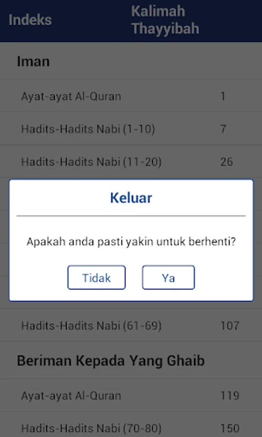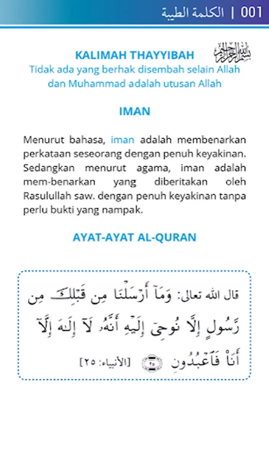 Alhamdulillah, was complete application Muntakhab Ahadis Courant First Book (Kalima Tayyibah) to all readers Islamyang religion written in Indonesian. This application collects excerpts of verses of the Koran and the hadiths of the Prophet Muhammad than about the advantages of utter Kalima Tayyibah and perkaitannya with faith and dependence to God Almighty. Through hadiths also contained stories and experiences of the Prophet and Companions may be used as a guide and instruction. Hopefully what we read we can take iktibar to charity and to convey to our brothers.