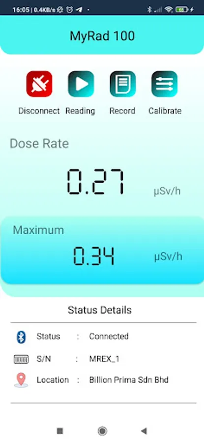 MyRad Surveymeter is a mobile application developed by Billion Prima Sdn Bhd for radiation measurement and calibration settings.