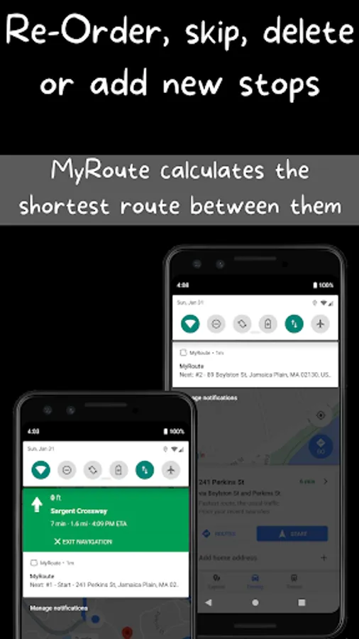 • You can re-order your existing route, skip any stop, and add or delete destinations.