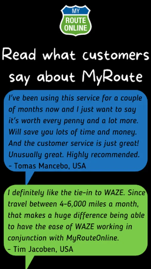 "Anytime I've had questions, my emails have been replied to almost immediately and always solve the problem I was having. Couldn't recommend MyRouteOnline enough." – Chris W., Ireland